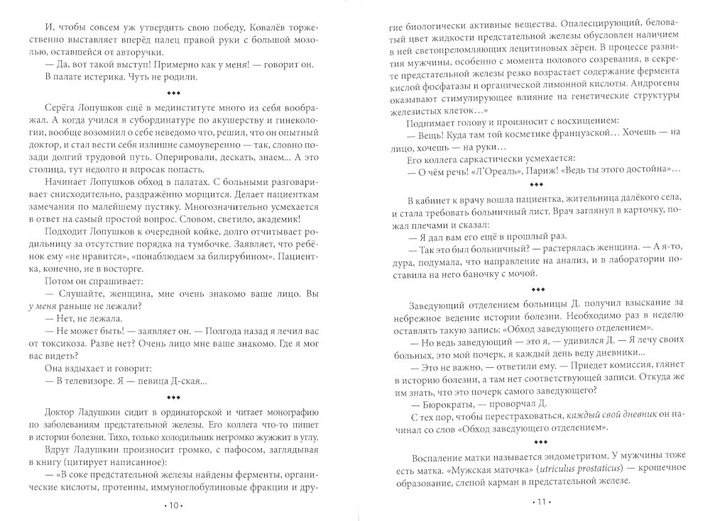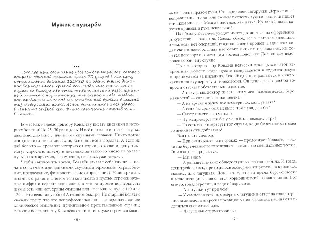 Перед вами записки, заметки, наблюдения рядового врача (а по совместительству и писателя). Захочется ему, допустим, оставить себе что-то на память, сохранить фразу, ситуацию, сюжет или типаж для своей литературной работы - бегло набросает несколько слов на первом подвернувшемся под руку листке бумаги, авось пригодится. Под руку доктору попадаются всё больше чистые бланки направлений в лабораторию, выписок, эпикризов... Впрочем, не только медицина - тема этой книги. Ещё - школа, семья, дети, студенты, аптека, эротика, литературное творчество... Заканчивается сборник отдельной пьесой - «медицинским фарсом в семи эпизодах». В приложении - воспоминания о художнике Н. Кузнецове, который проиллюстрировал эту книгу.| Издательство | Изд.МИА |
