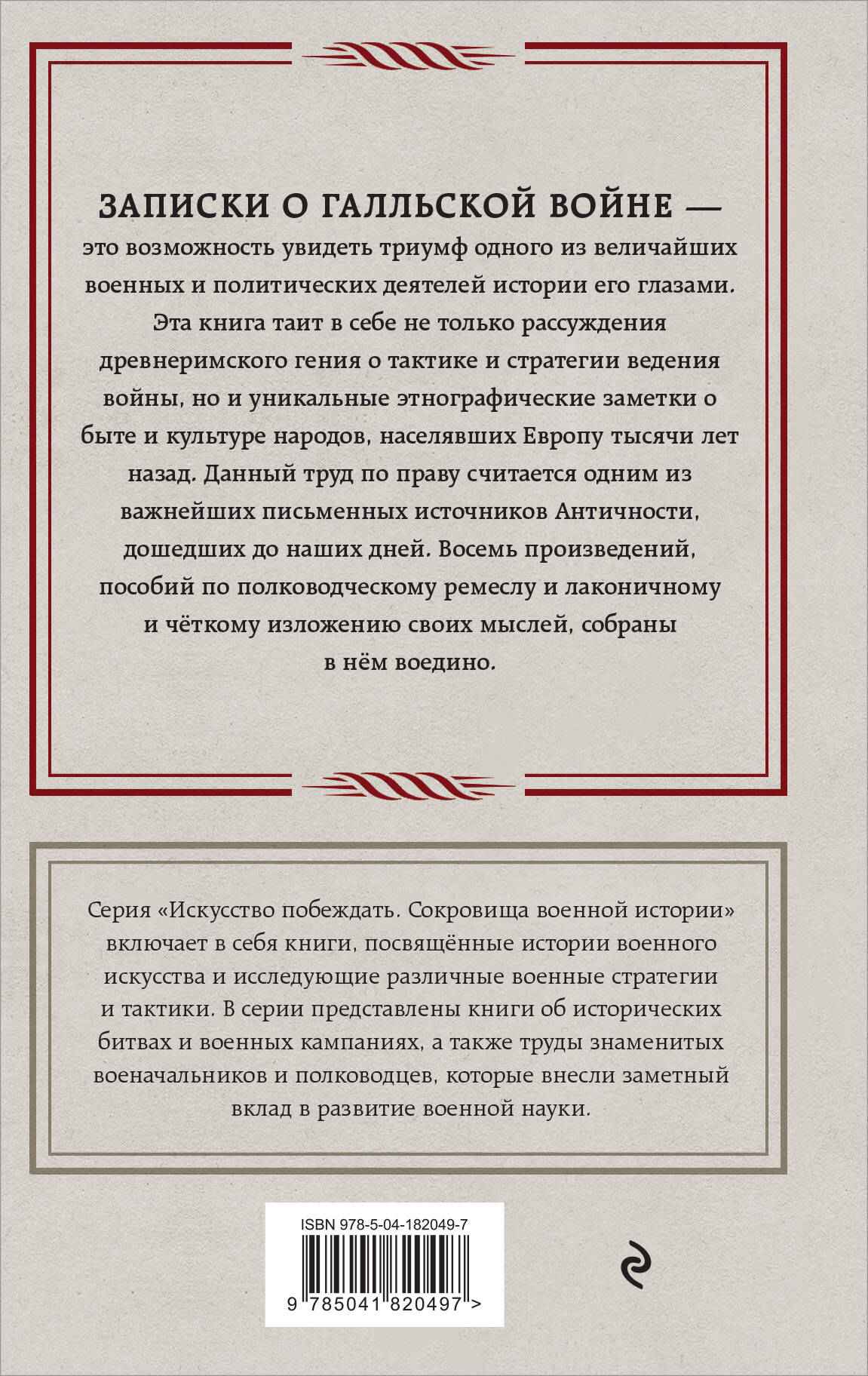 «Записки о галльской войне» - шедевр легендарного Юлия Цезаря, труд, который до сих пор остается актуальным и захватывающим для читателей всех возрастов. В этих заметках описывается предыстория и ход галльских войн, рассказывается о стратегии и тактике битв, раскрываются характеры участников, оказавших влияние на те давние события. «Записки о галльской войне» - это не только увлекательное чтение, но и возможность окунуться в историю, узнать о жизни и обычаях древних галлов и римлян, а также о том, каким образом легендарный Цезарь добился славы и власти. Если вас интересует римская история, политика, военная история, эта книга станет неоценимым приобретением в вашу читательскую коллекцию. Она подойдет также для тех, кто хочет изучать историю по увлекательным рассказам современников событий, а не по сухим фактам со страниц учебников. Ведь Цезарь был не только выдающимся полководцем, но и талантливым писателем. Не зря великий римский оратор и философ Цицерон дал такую оценку книге «Записки о галльской войне»: «Они наги, прямы и красивы, с них сняты всякие украшения речи, как одежда... Нет ничего приятнее для истории, как чистая и приятная краткость». Погрузитесь во вселенную древнего мира, где правили смелость, ум и изобретательность. Не упустите возможность окунуться в историю и почувствовать себя свидетелем одного из самых захватывающих периодов в истории человечества! Серия «Искусство побеждать. Сокровища военной истории» включает в себя книги, посвященные истории военного искусства и исследующие различные военные стратегии и тактики. В серии представлены книги об исторических битвах и военных кампаниях, а также труды знаменитых военачальников и полководцев, которые внесли заметный вклад в развитие военной науки.