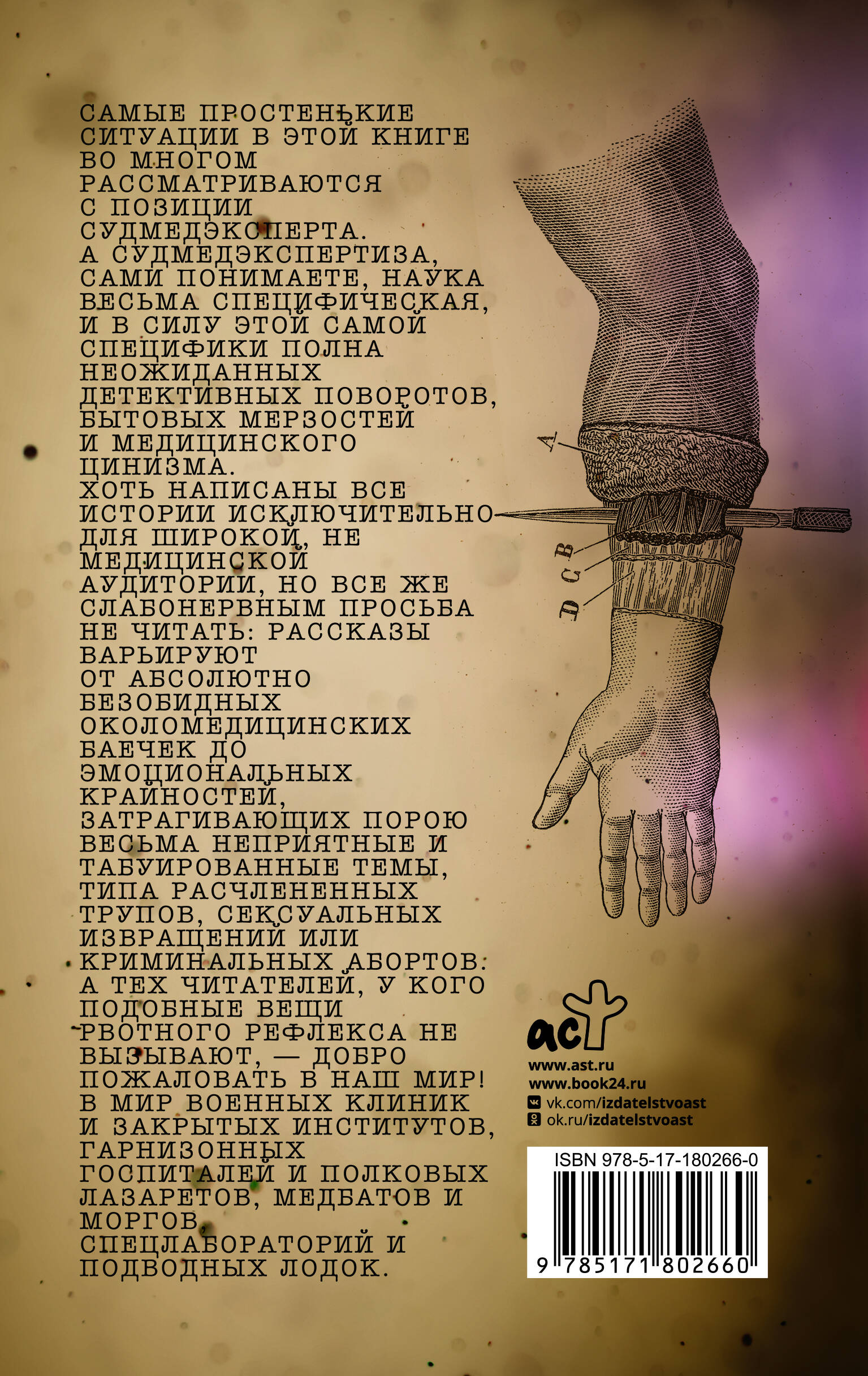 Самые простенькие ситуации в этой книге во многом рассматриваются с позиций судмедэксперта. А судмедэкспертиза или судмедэкспертиза, сами понимаете, наука весьма специфическая, и в силу этой самой специфики полна неожиданных детективных поворотов, бытовых мерзостей и медицинского цинизма. Хоть написаны все истории исключительно для широкой, не медицинской аудитории, но всё же слабонервным просьба не читать - рассказы варьируют от абсолютно безобидных околомедицинских баечек до эмоциональных крайностей, затрагивающих порою весьма неприятные и табуированные темы, типа расчлененных трупов, сексуальных извращений или криминальных абортов. А тем читателям, у кого подобные вещи рвотного рефлекса не вызывают - добро пожаловать в наш мир! В мир военных клиник и закрытых институтов, гарнизонных госпиталей и полковых лазаретов, медбатов и моргов, спецлабораторий и подводных лодок. А. Ломачинский| Издательство | Издательство "АСТ" |