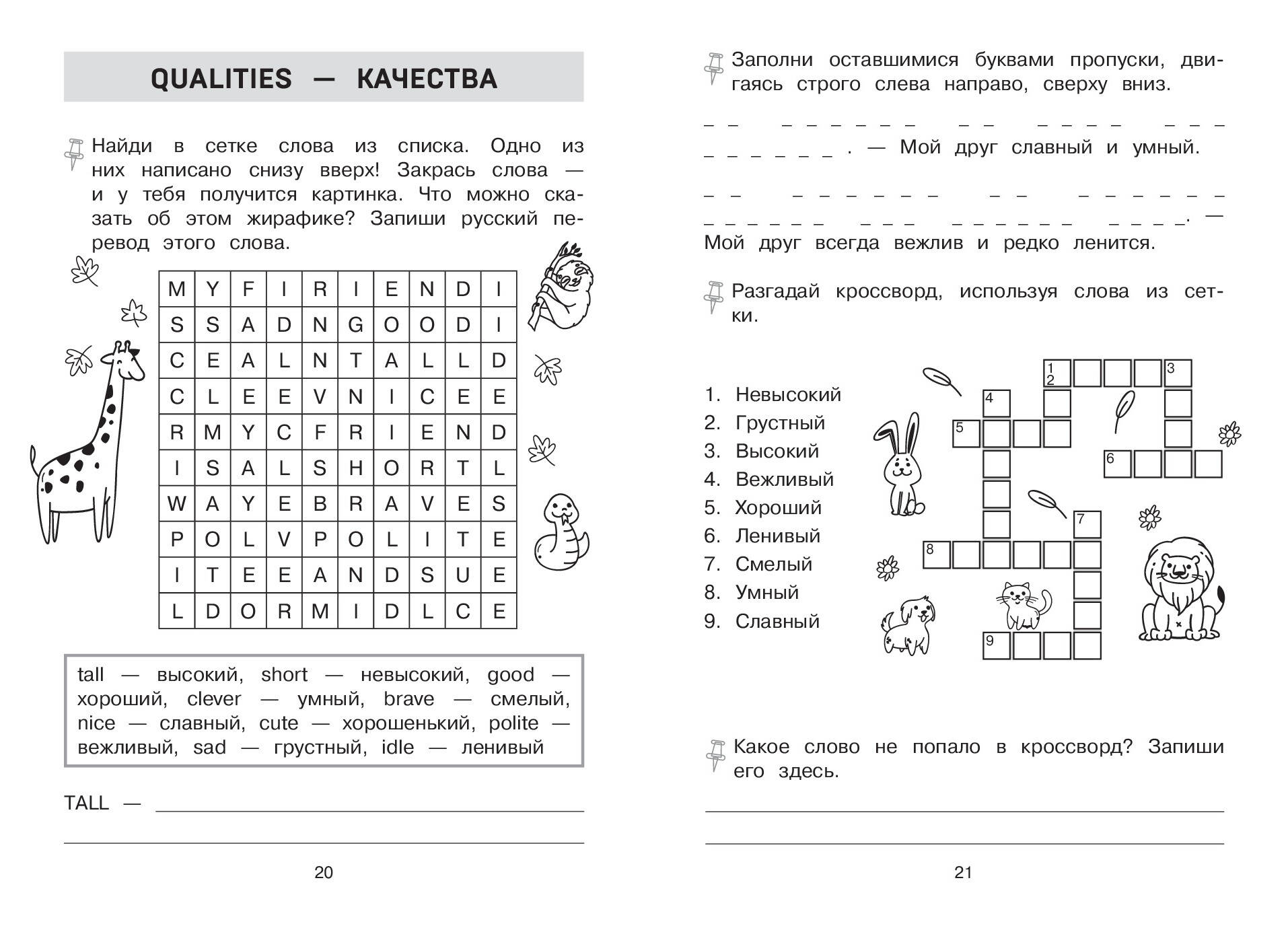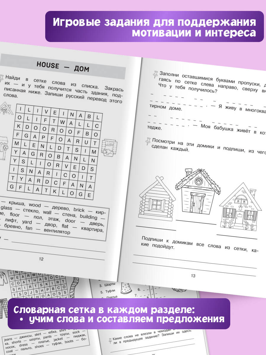 Тренажёр создан для учеников 2 класса с учётом их возрастных особенностей. Внутри -увлекательные интерактивные задания. Решая головоломки и кроссворды, дети 7-8 лет будут надёжно запоминать английские слова и их правописание. Игровой формат делает обучение не только полезным, но и интересным. Ключевой элемент каждого раздела - словарная сетка, благодаря которой ученики узнают новые слова и сразу научатся использовать их в предложении. При регулярном занятии с этим тренажёром ученики начальной школы гарантированно повысят свой уровень владения языком, увеличат словарный запас и подготовятся к проверочным и контрольным работам по предмету English. В конце тренажёра помещены ответы на задания и краткий словарь. Сборник полностью соответствует требованиям ФГОС начального общего образования.| Издательство | ООО "Издательство "Эксмо" |