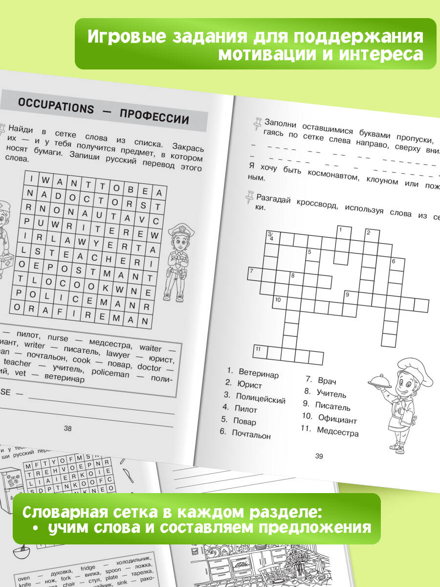 Тренажёр предназначен для учеников 4 класса, изучающих английский язык в школе и дома. Пособие содержит разнообразные и увлекательные задания, в том числе кроссворды и головоломки. Все они направлены на увеличение словарного запаса и развитие навыка составления предложений на английском языке. В конце книги приведены ответы ко всем заданиям и словарик для лучшего запоминания новых слов. По какому бы учебнику ни занимались ученики в школе, этот тренажёр станет незаменимым дополнением к школьному курсу, поможет запомнить английские слова и научит правильно применять их в речи.| Издательство | ООО "Издательство "Эксмо" |
