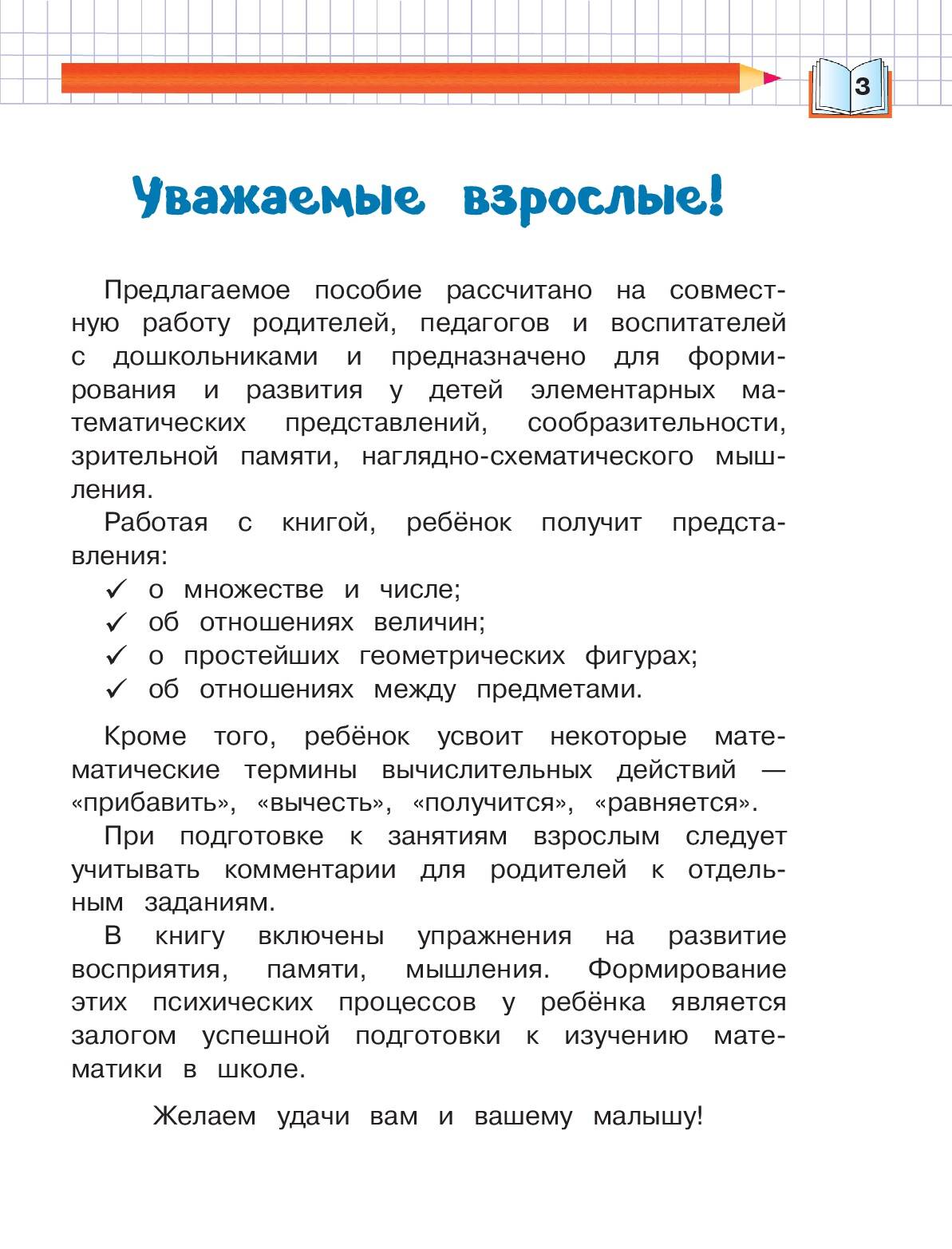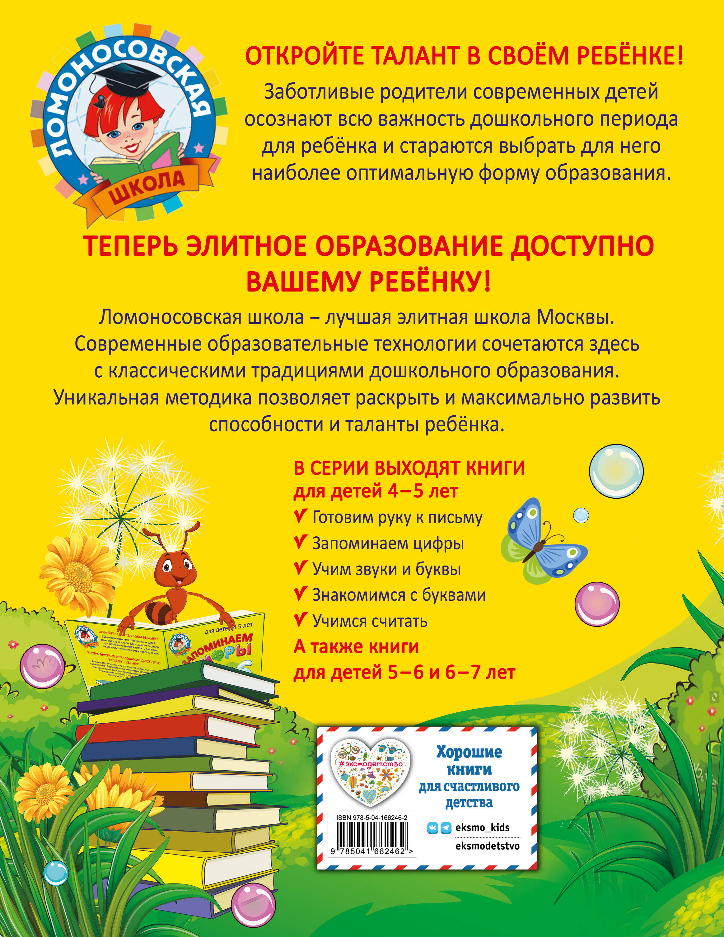Легендарная серия обучающих пособий для развития ребенка и подготовки к школе в кратком изложении. Проверенная на практике и показавшая свою эффективность методика, умело сочетающая современные технологии обучения с лучшими классическими традициями российского образования, будет способствовать развитию у дошкольника элементарных математических представлений, сообразительности, зрительной памяти, наглядного мышления. Занимаясь, ребёнок научится различать цифру и число, сравнивать предметы по количеству, рисовать узоры и писать цифры в клетках; получит представление о простейших геометрических фигурах; потренирует навык счета; сможет развить внимание, мышление, память, моторику; а также усвоит такие математические термины, как «прибавить», «вычесть», «получится», «равняется». Кроме того, при подготовке к занятиям взрослым необходимо учитывать комментарии для родителей к отдельным заданиям, которые помогут оптимизировать обучающий процесс. Книга предназначена для талантливых детей 4-5 лет, их заботливых родителей и неравнодушных педагогов и может быть использована как при домашнем обучении, так и на занятиях в детском саду.| Издательство | Эксмо |