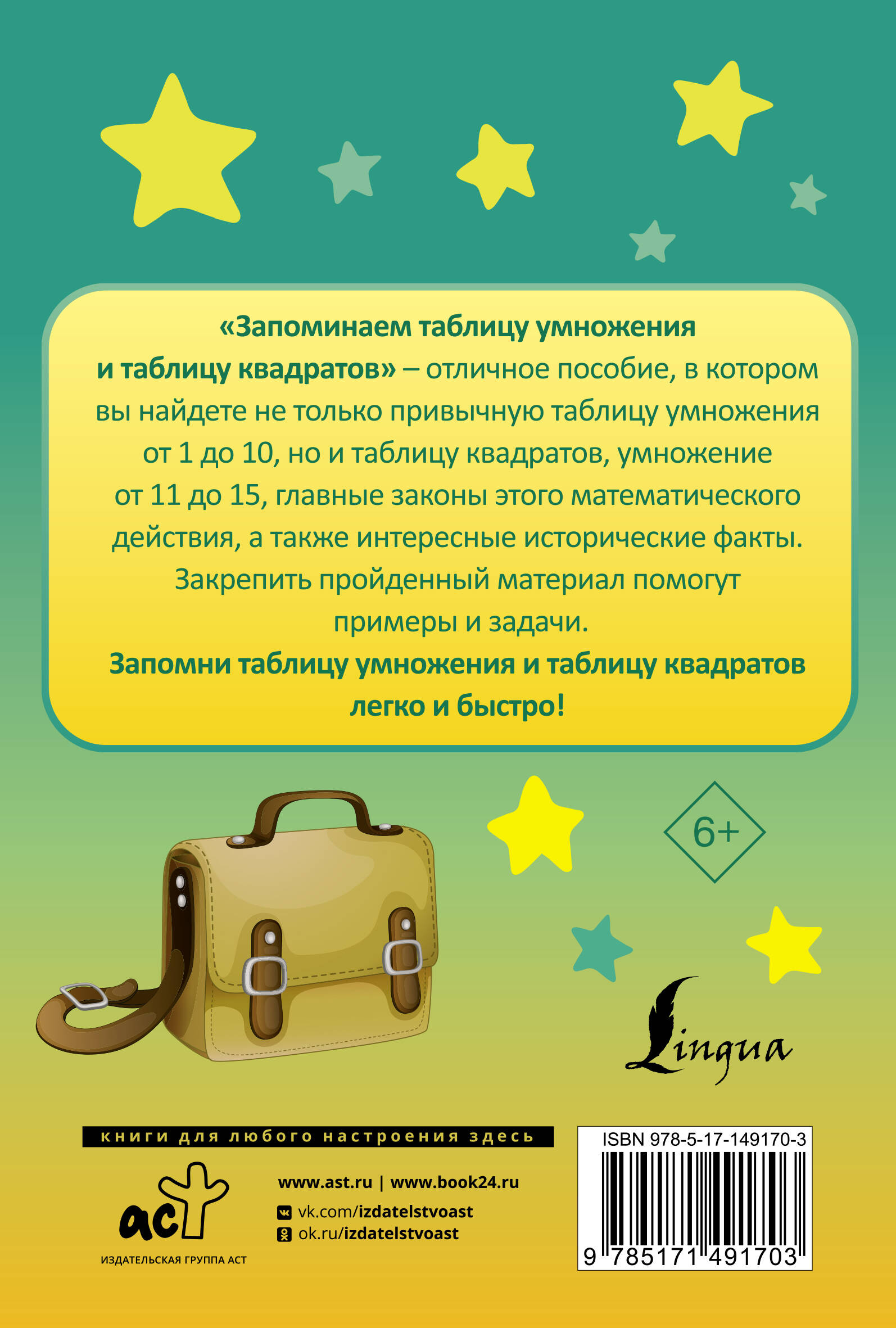 «Запоминаем таблицу умножения и таблицу квадратов» - отличное пособие, в котором вы найдете: - привычную таблицу умножения от 1 до 10; - таблицу квадратов; - умножение от 11 до 15; - главные законы изучаемого математического действия; - таблицу Пифагора; - интересные исторические факты. Запомни таблицу умножения и таблицу квадратов легко и быстро!| Издательство | АСТ |