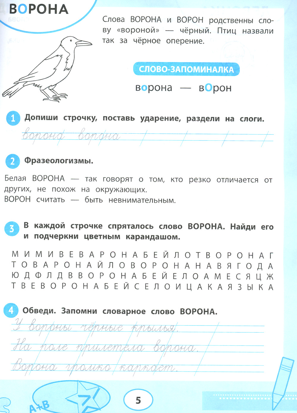 «Запоминайка» - многофункциональная рабочая тетрадь, помощница для первоклассников, а также для родителей, которые хотят, чтобы их дети были успешны в школе, и педагогов, которым важно научить детей писать грамотно. «Запоминайка» поможет ребенку: - познакомиться со словарными словами, фразеологизмами, пословицами и поговорками, в которых они используются; - узнать этимологию этих слов; - узнать секрет, как легче запомнить правописание трудных слов; - закрепить правописание словарных слов, расшифровывая анаграммы, придумывая словосочетания и предложения; - выработать красивый почерк. Сборник можно использовать в качестве дополнительного материала на уроках в классе, а также для работы дома.| Издательство | Феникс |