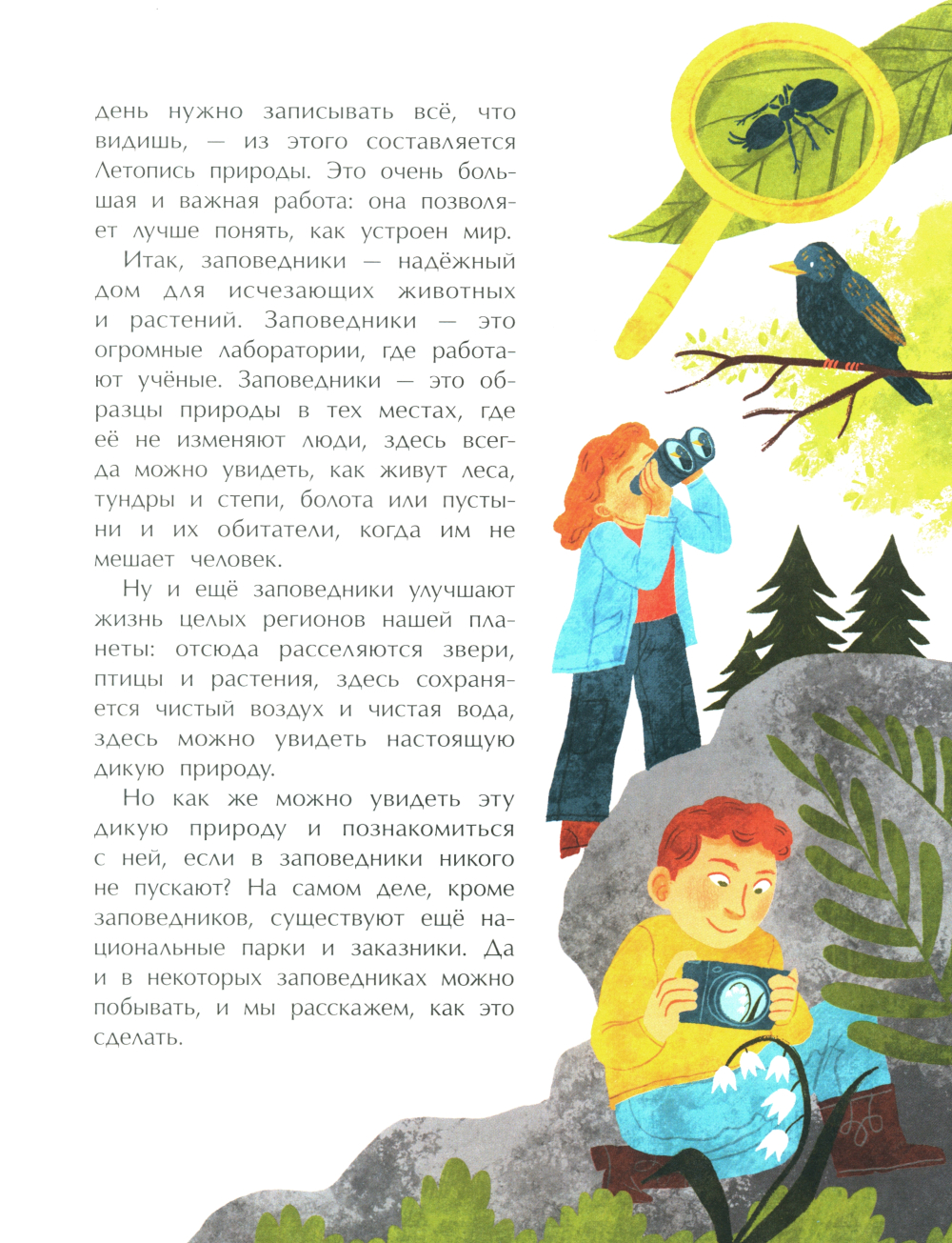 Что такое заповедники? Чем они отличаются от заказников и национальных парков? Кто в них работает и может ли попасть туда любой желающий? Эта книга о местах, где люди сохраняют живую природу, о тех, кто находится под охраной, и о том, что для дикой природы может сделать каждый из нас.