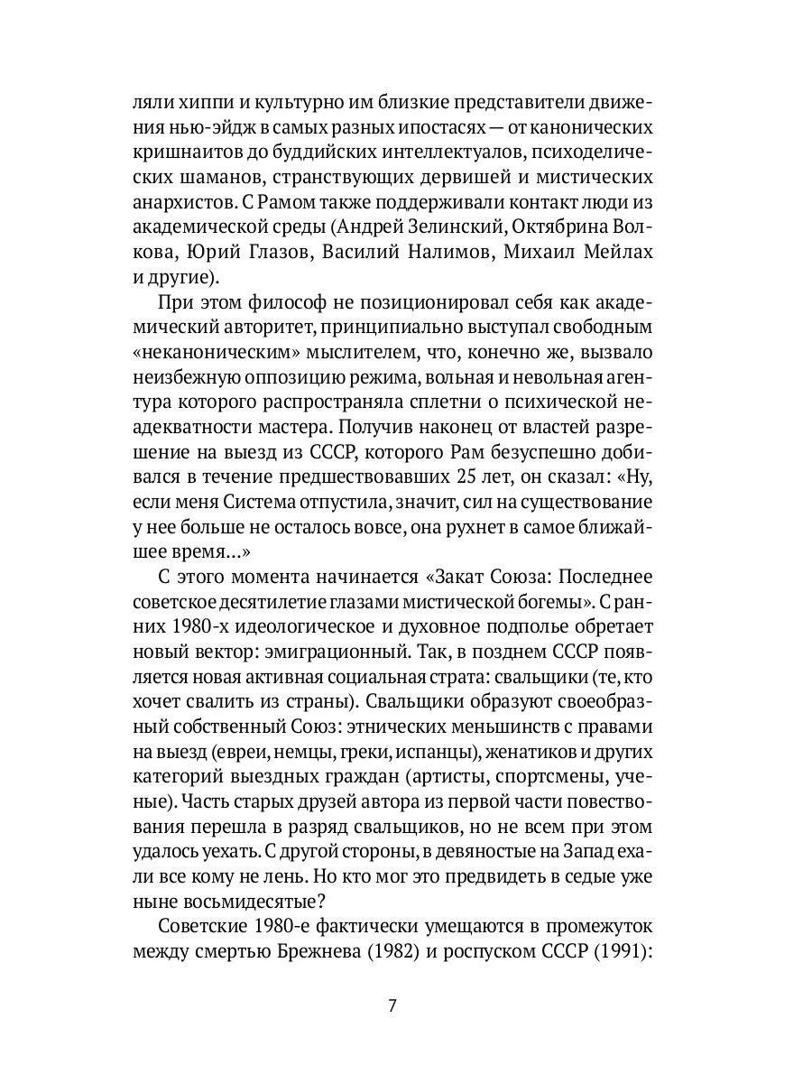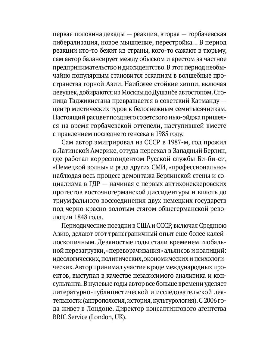 Книга Владимира В. Видеманна - журналиста, писателя, историка и антрополога - открывает двери в социальное и духовное подполье, бурлившее под спудом официальной идеологии в последнее десятилетие существования СССР. Эпоха застоя подходит к своему апофеозу, вольнолюбивая молодежь и люди с повышенными запросами на творческую реализацию стремятся покинуть страну в любом направлении. Перестройка всем рушит планы, но и открывает новые возможности. Вместе с автором мы погрузимся в тайную жизнь советских неформалов, многие из которых впоследствии заняли важные места в истории России.| Издательство | Рипол Классик |