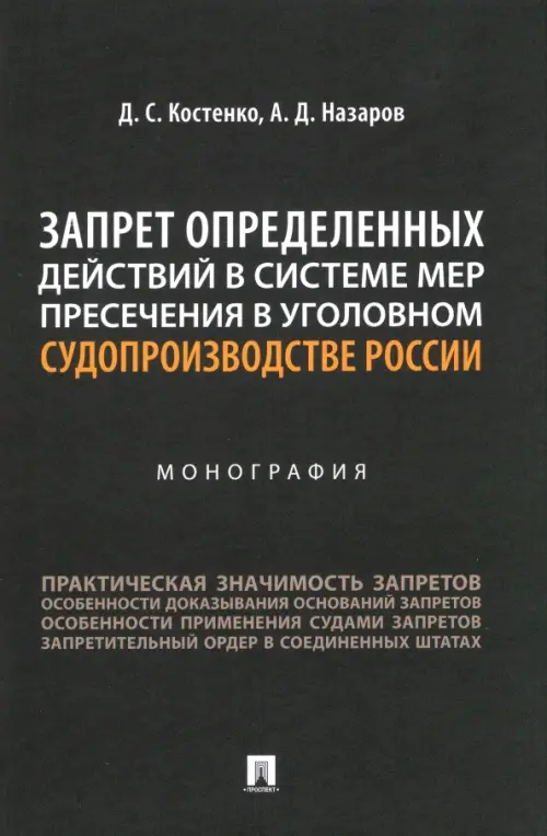 Монография посвящена запрету определенных действий - мере пресечения, относительно недавно оформленной в уголовном процессе России. Актуальная действительность правоприменения, с одной стороны, показывает широкие возможности для применения запрета определенных действий, с другой - отсутствие устоявшейся практики и всестороннего теоретического разбора вопроса.