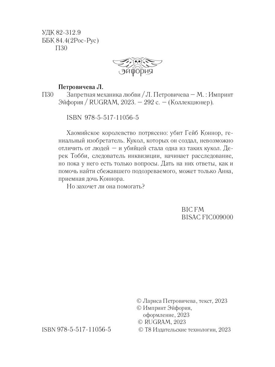 Хаомийское королевство потрясено: убит Гейб Коннор, гениальный изобретатель. Кукол, которых он создал, невозможно отличить от людей - и убийцей стала одна из таких кукол. Дерек Тобби, следователь инквизиции, начинает расследование, но пока у него есть только вопросы. Дать на них ответы, как и помочь найти сбежавшего подозреваемого, может только Анна, приемная дочь Коннора. Но захочет ли она помогать?| Издательство | Т8 RUGRAM |