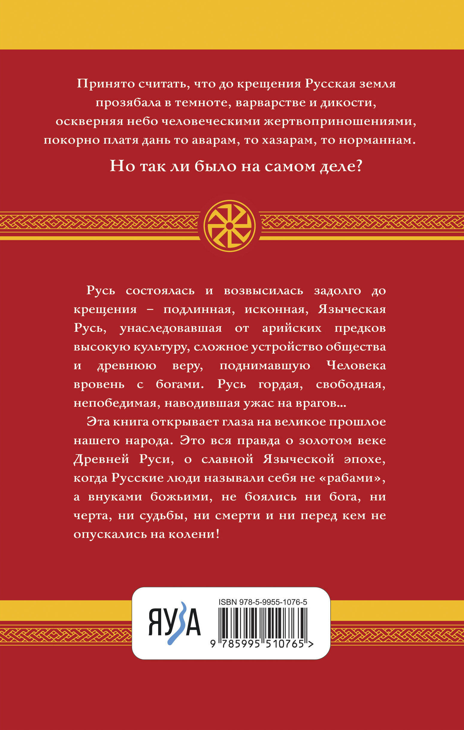 Принято считать, что до крещения Русская Земля прозябала в темноте, варварстве и дикости, оскверняя небо человеческими жертвоприношениями, покорно платя дань то аварам, то хазарам, то норманнам. Но так ли было на самом деле? Русь состоялась и возвысилась задолго до крещения - подлинная, исконная, Языческая Русь, унаследовавшая от арийских предков высокую культуру, сложное устройство общества и древнюю веру, поднимавшую Человека вровень с богами. Русь гордая, свободная, непобедимая, наводившая ужас на врагов… Главная книга известного историка Языческой Руси открывает глаза на великое прошлое нашего народа. Это - вся правда о «Золотом Веке» Древней Руси, о славной Языческой эпохе, когда Русские люди называли себя не «рабами», а внуками божьими, не боялись ни бога, ни черта, ни судьбы, ни смерти и ни перед кем не опускались на колени!| Издательство | Яуза-пресс ООО |