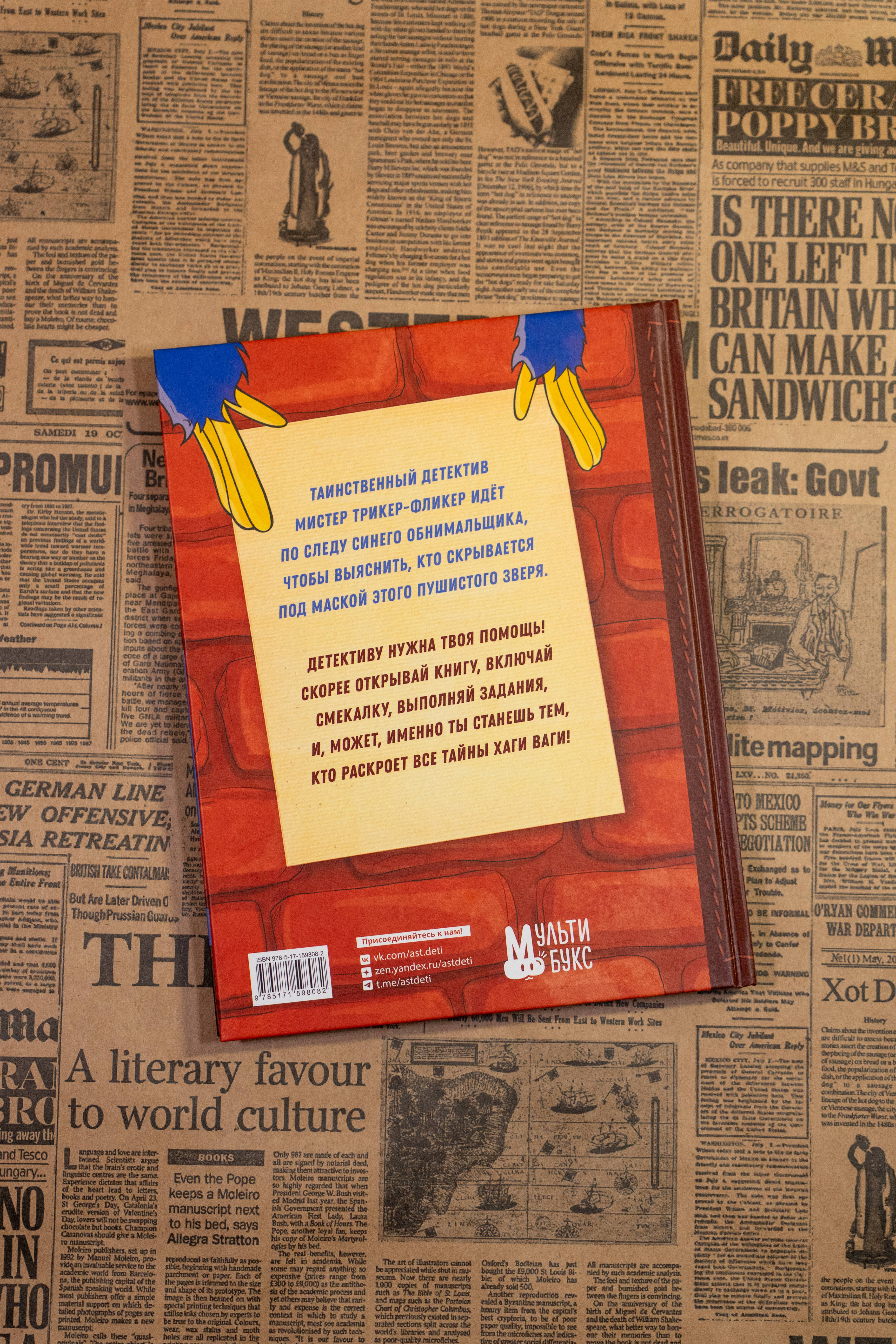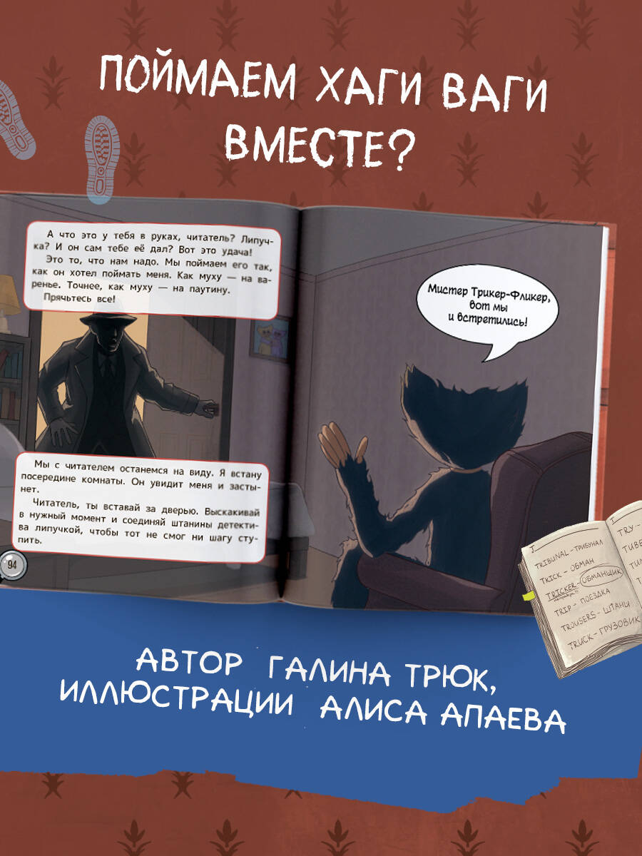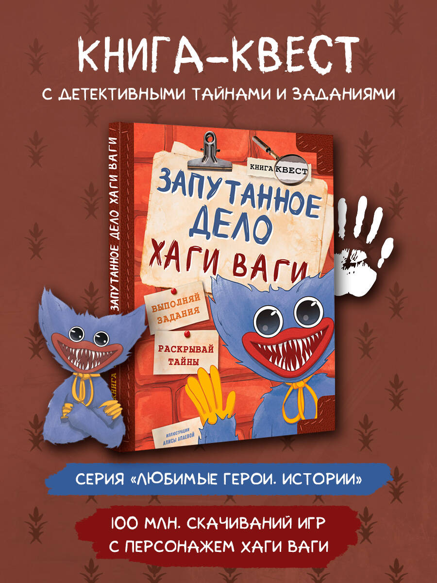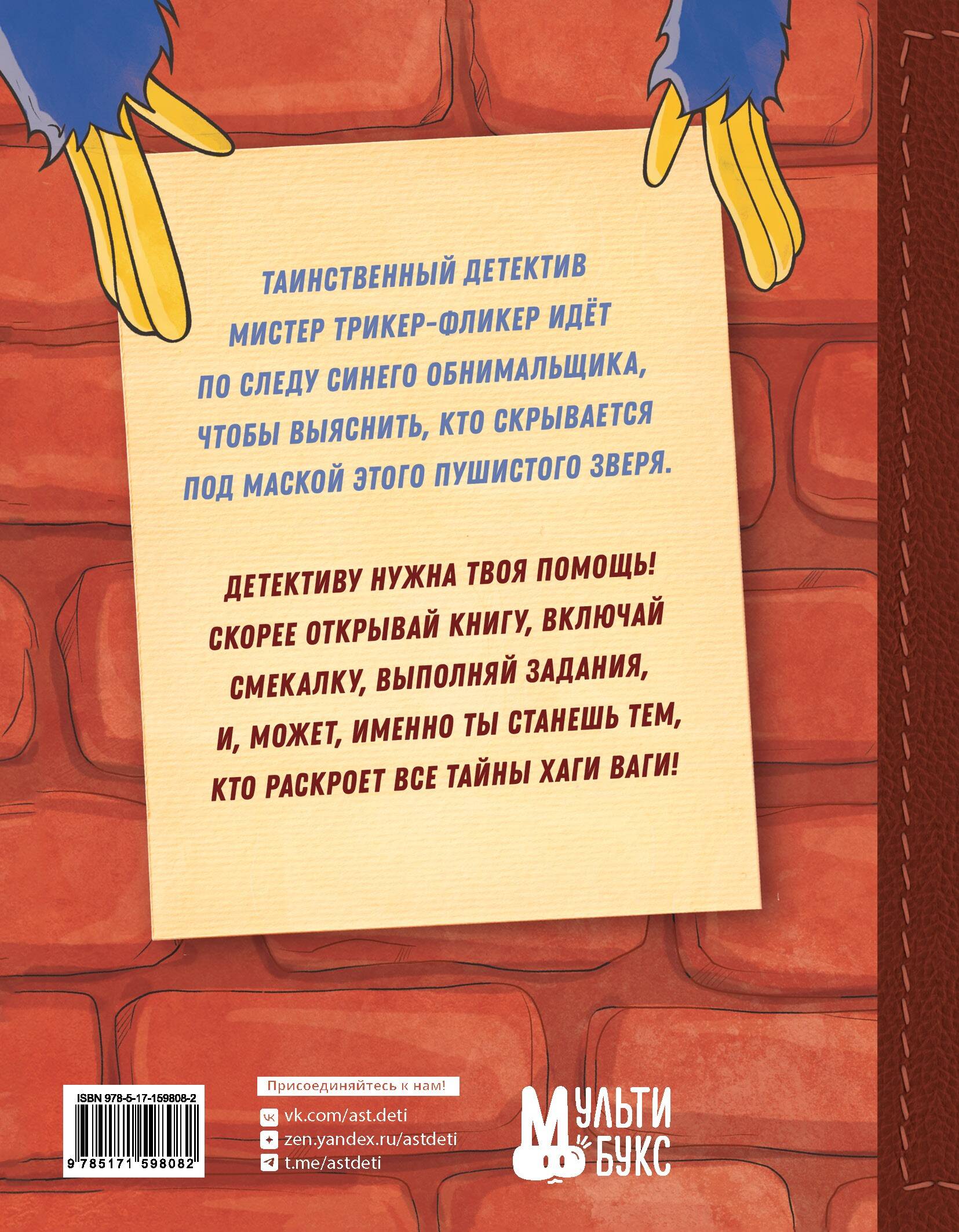 Таинственный детектив мистер Трикер-Фликер идёт по следу синего обнимальщика, чтобы выяснить, кто скрывается под маской этого пушистого зверя. Детективу нужна твоя помощь! Скорее открывай книгу, включай смекалку, выполняй задания, и, может, именно ты станешь тем, кто раскроет все тайны Хаги Ваги!| Издательство | Издательство "АСТ" |