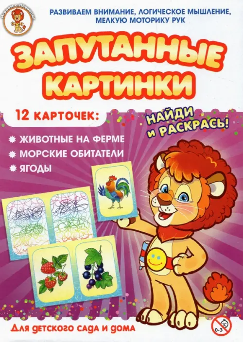 Запутанные картинки - это увлекательная настольная игра для маленьких детей, разработанная опытными и квалифицированными педагогами дошкольного образования. Игра способствует развитию внимания ребёнка, его логического мышления и мелкой моторики рук, а также знакомит детей с предметами окружающего мира, расширяет их кругозор, прививает им эстетические чувства. Набор включает 12 карточек из плотного картона: 6 карточек с цветными объектами и 6 карточек-путаниц. Яркие, красочные картинки привлекут внимание ребёнка и сделают процесс игры более интересным и захватывающим. Правила игры Разрежьте карточки с цветными объектами по пунктирной линии. Разложите все карточки перед ребёнком. Укажите ему на одну из карточек с цветным объектом и предложите найти карточку-путаницу, на которой изображён этот же предмет. Попросите малыша назвать и описать изображённый предмет. Покажите ему, как накрыть карточку-путаницу цветной карточкой. После того, как малыш справится с заданием и правильно разложит все карточки, предложите ему раскрасить карточки-путаницы, используя цветной образец. Можно также предложить ребёнку распределить карточки по тематическим группам (животные на ферме, морские обитатели, ягоды). В зависимости от возраста и возможностей ребёнка можно увеличивать или уменьшать количество карточек в игре.