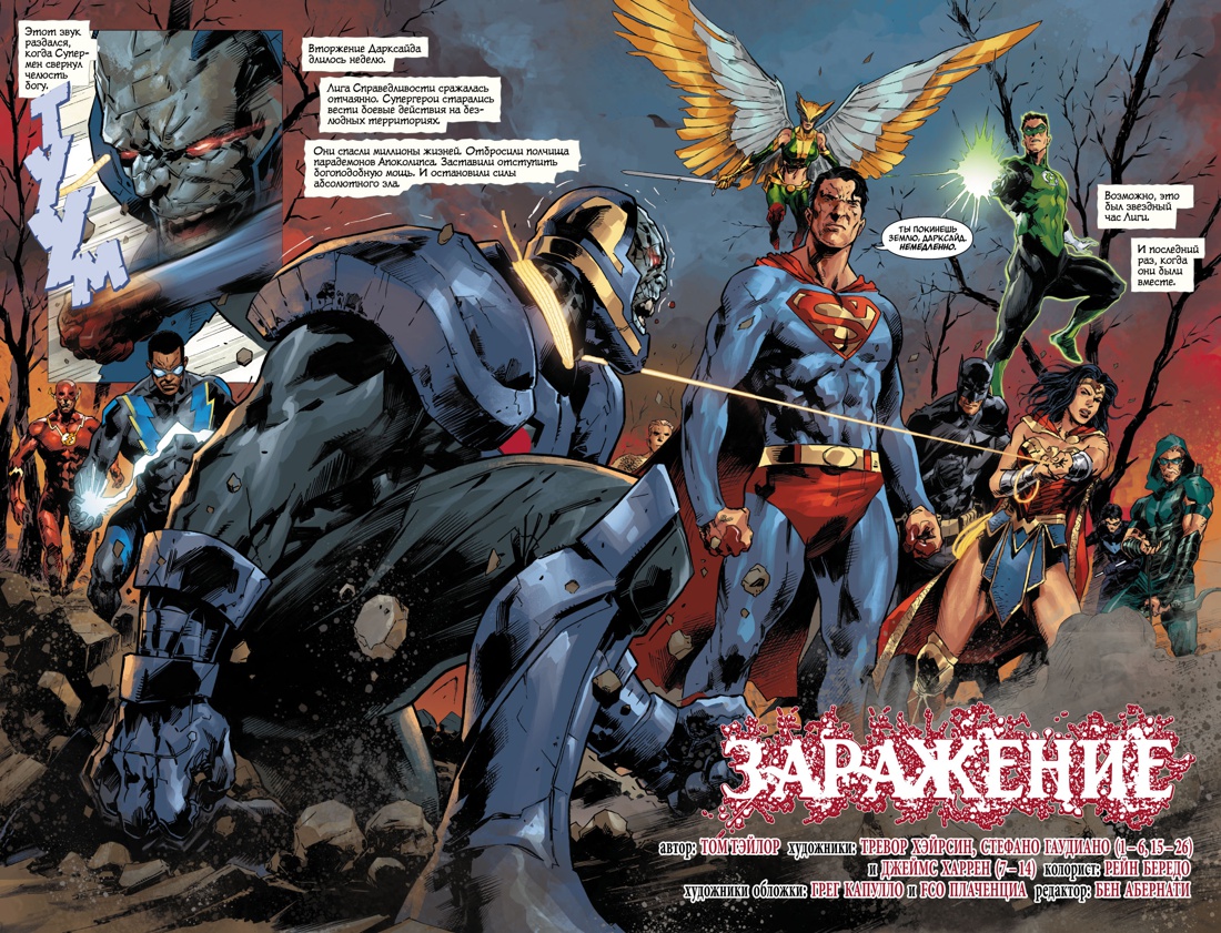 КОНЕЦ СВЕТА УЖЕ НАСТУПИЛ! Шестьсот миллионов человек. Таково количество жертв обрушившегося на Землю биотехногенного вируса. Шестьсот миллионов зараженных. Шестьсот миллионов человек превратились в одержимых, обезумевших убийц, уничтожающих все живое на своем пути. И это только начало. Города. Государства. Подводные царства и райские острова. Один за другим они гибнут под натиском полчищ ходячих мертвецов. Супермен, Бэтмен, Чудо-Женщина и другие члены Лиги Справедливости встают на защиту Земли от полного уничтожения… Но долго ли они продержатся? Никогда прежде они не сталкивались со столь масштабной угрозой. Никакая из тех опасностей, с которыми им приходилось иметь дело, не идет в сравнение с этой трагедией и ужасом. И когда герои и злодеи, боги и чудовища уничтожены, остается лишь один вопрос: Что станет с Величайшими Героями Мира, если сам мир погибнет?| Издательство | Азбука |