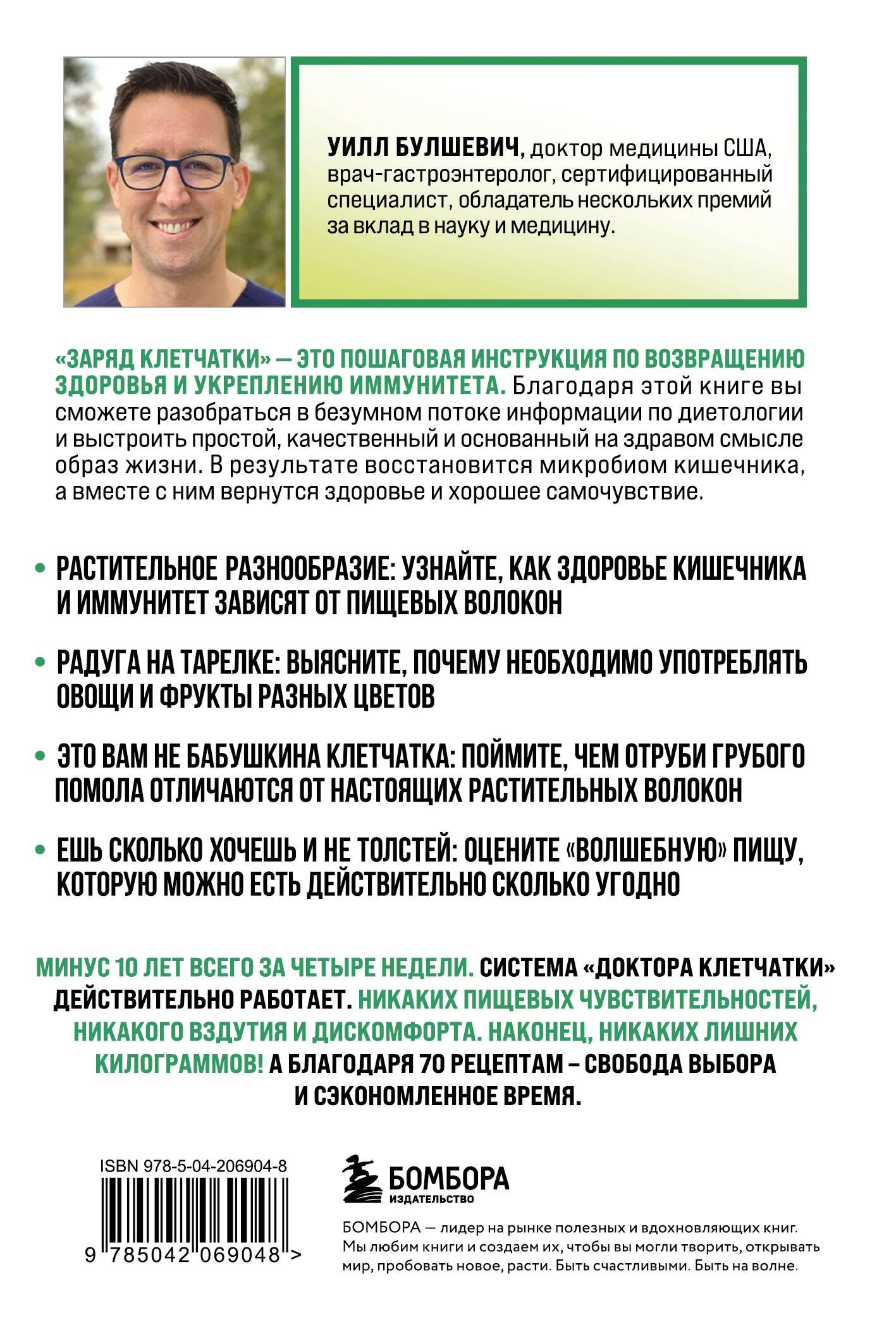 Книга эксперта по питанию и гастроэнтеролога Уилла Булшевича моментально стала бестселлером в Америке. Более 4000 отзывов на Амазоне говорят сами за себя. Мы недооцениваем силу влияния растительной пищи на восстановительные процессы нашего организма. Бурный рост исследований микробиома, который наблюдается в последние несколько лет, наглядно доказывает, что привычные ограничительные диеты, такие как кето и палео, на самом деле вредны для нашего организма. Авторская методика доктора Булшевича направлена на оздоровление кишечника и ускорение метаболизма, налаживание гормонального баланса и сдерживание воспаления, которое провоцирует развитие тяжелых заболеваний.| Издательство | ООО "Издательство "Эксмо" |