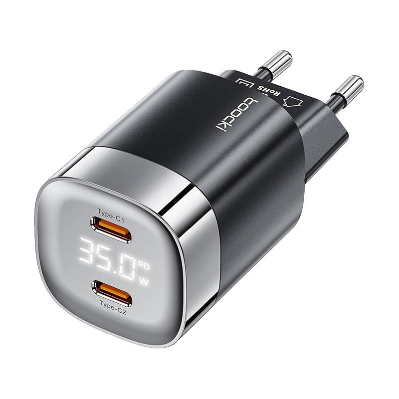 Зарядное устройство Toocki 2x USB-C, GaN 35 Вт (черный)