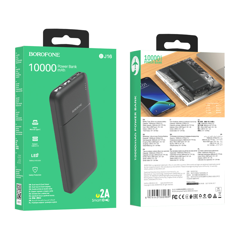 В комплекте: внешний аккумулятор, кабель USB / micro USB (50 см).