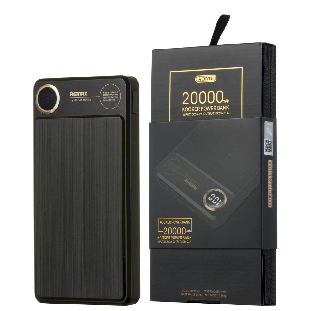 Remax RPP-59 Kooker Power Bank Портативный аккумулятор 20000 mAh / 2.1A Черный