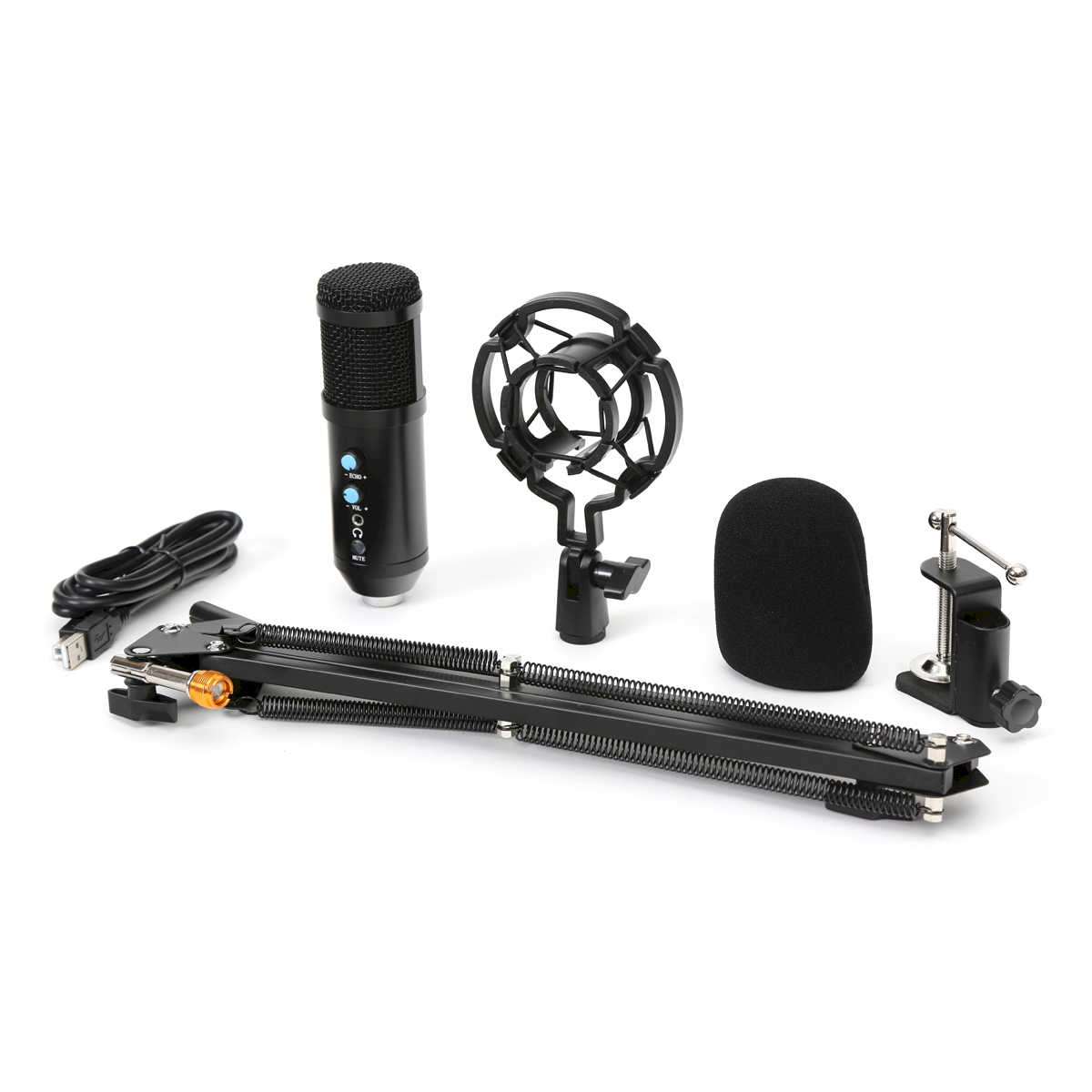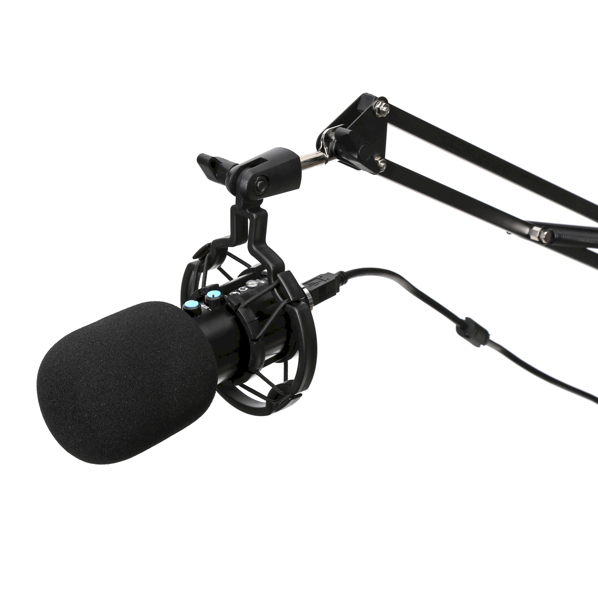 В коробке: микрофон, крепление на руку, настольное крепление, амортизатор, поп-фильтр, USB-кабель, руководство пользователя.