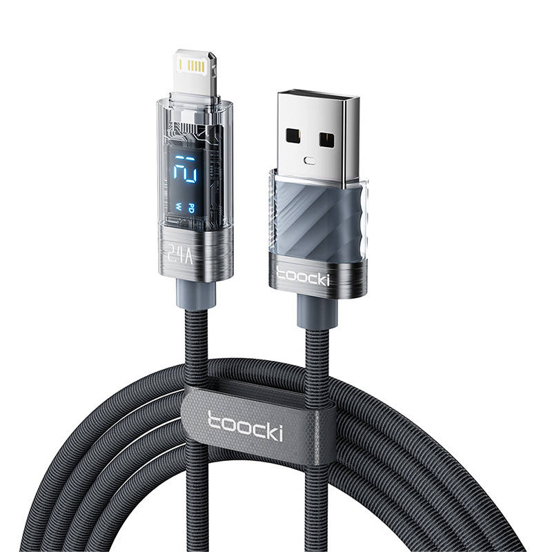 Brand Toocki Name A-L 2.4A fast charging data cable Model TXCLZX0G-01 Color Gray Type USB-A to Lightning Current 2.4 A max. Transmission speed Up to 480 Mbps Material PC braided Cable length 1 m
