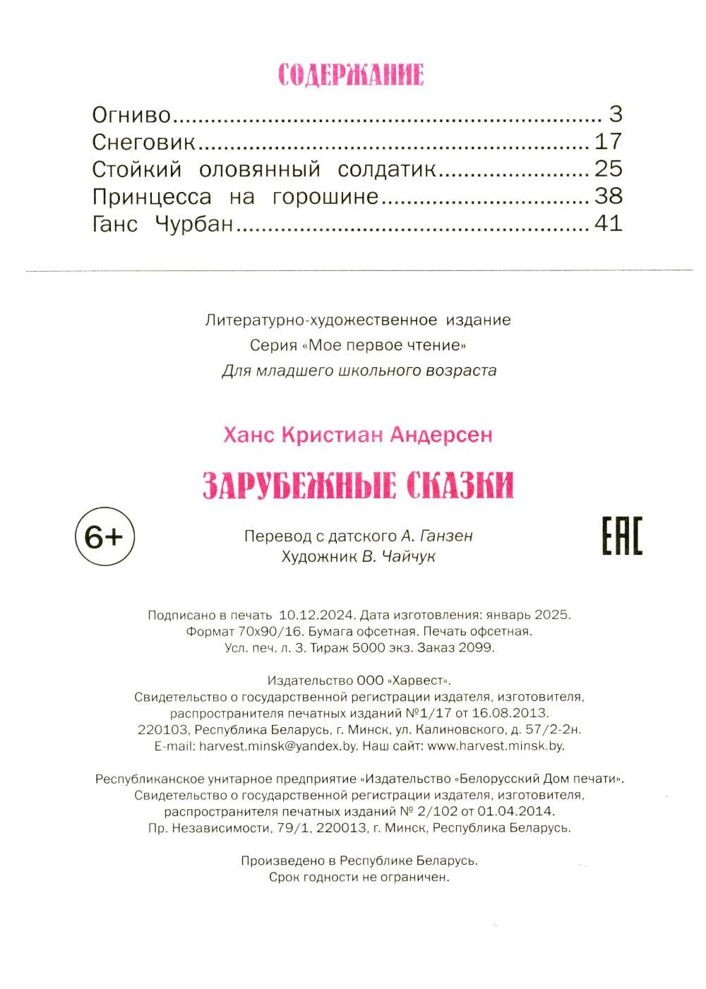 Книга для детей «Ганс Христиан Андерсен. Зарубежные сказки» - идеальный выбор для первого самостоятельного чтения. В сборнике представлены известные с детства сказки для малышей: «Огниво», «Снеговик», «Стойкий оловянный солдатик», «Принцесса на горошине» и «Ганс Чурбан». Преимущества сказки для детей от издательства «Харвест»: Сказки, которые захватят воображение ребенка и подарят ему незабываемые эмоции. Простое и доступное изложение, крупный шрифт делают книжку идеальной для первых самостоятельных чтений. Мини книги. Удобный формат позволяет брать книгу с собой в дорогу или читать перед сном. Книжка способствует развитию навыков чтения и любви к книгам с раннего возраста.| Издательство | Харвест |