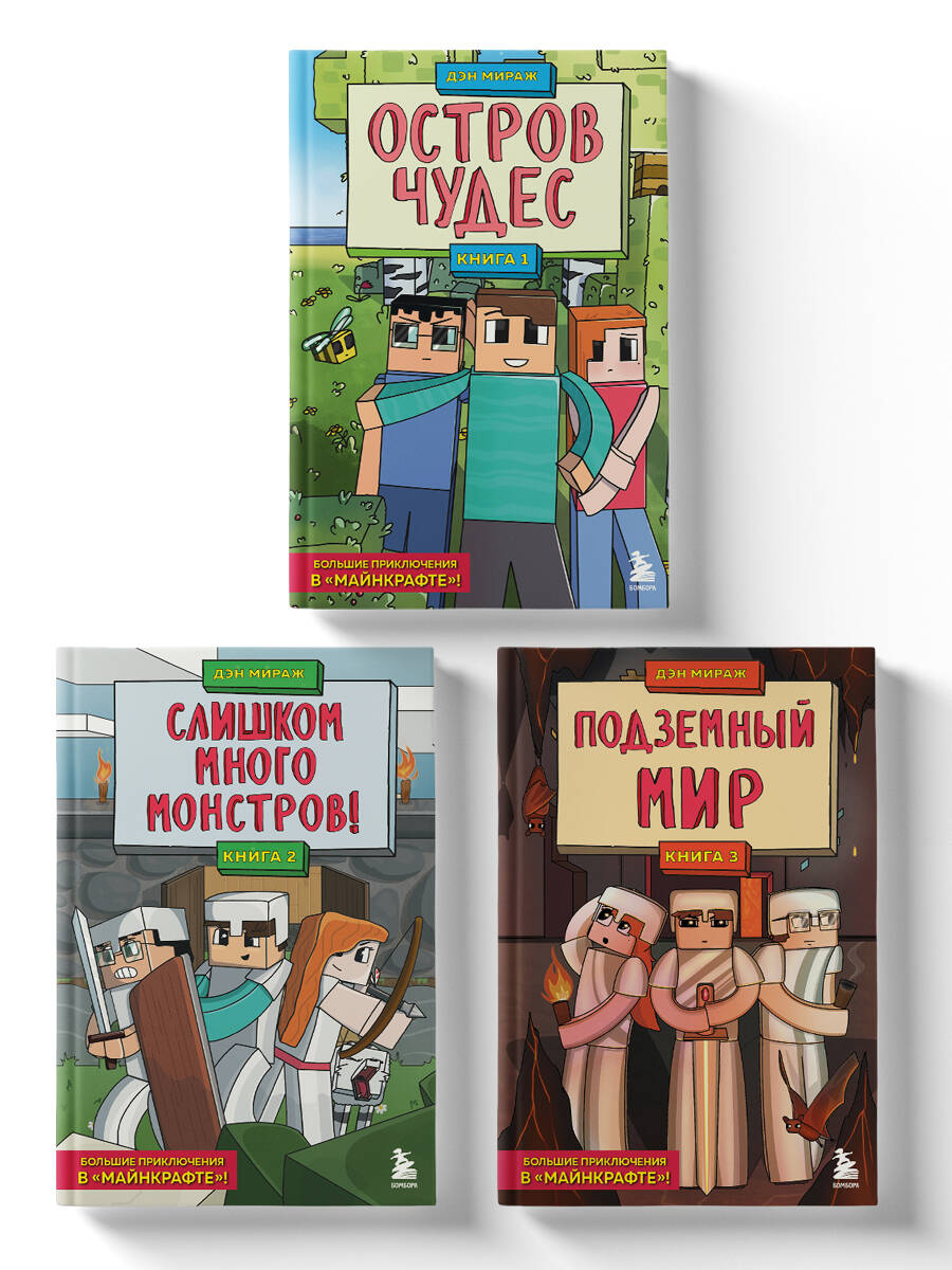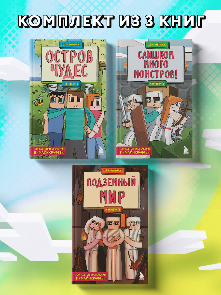 Комплект «Защитники Майнкрафта». Майнкрафт в опасности! Мир захватывает Иногад! Спасти Майнкрафт отправляются Алекс, Вика и Ник. Они знакомятся с миром изнутри, учатся сражаться и ищут крутые доспехи, заводят друзей и противостоят врагам, готовясь к схватке с Иногадом и его приспешниками. Погрузитесь в захватывающую историю, болейте за Алекса, Вику и Ника - Майнкрафт ждёт! В серию входят: 1. «Остров чудес» 2. «Слишком много монстров!» 3. «Подземный мир»| Издательство | ООО "Издательство "Эксмо" |