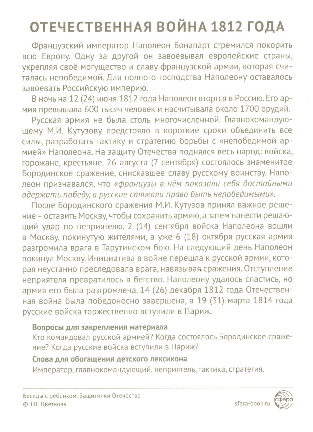 Аннотация: Защитники Отечества (12 картинок с текстом, в папке, А5)