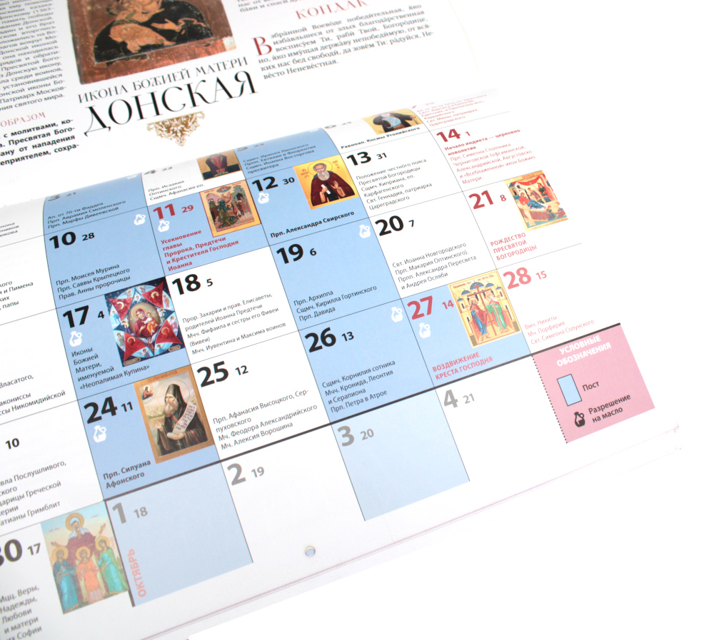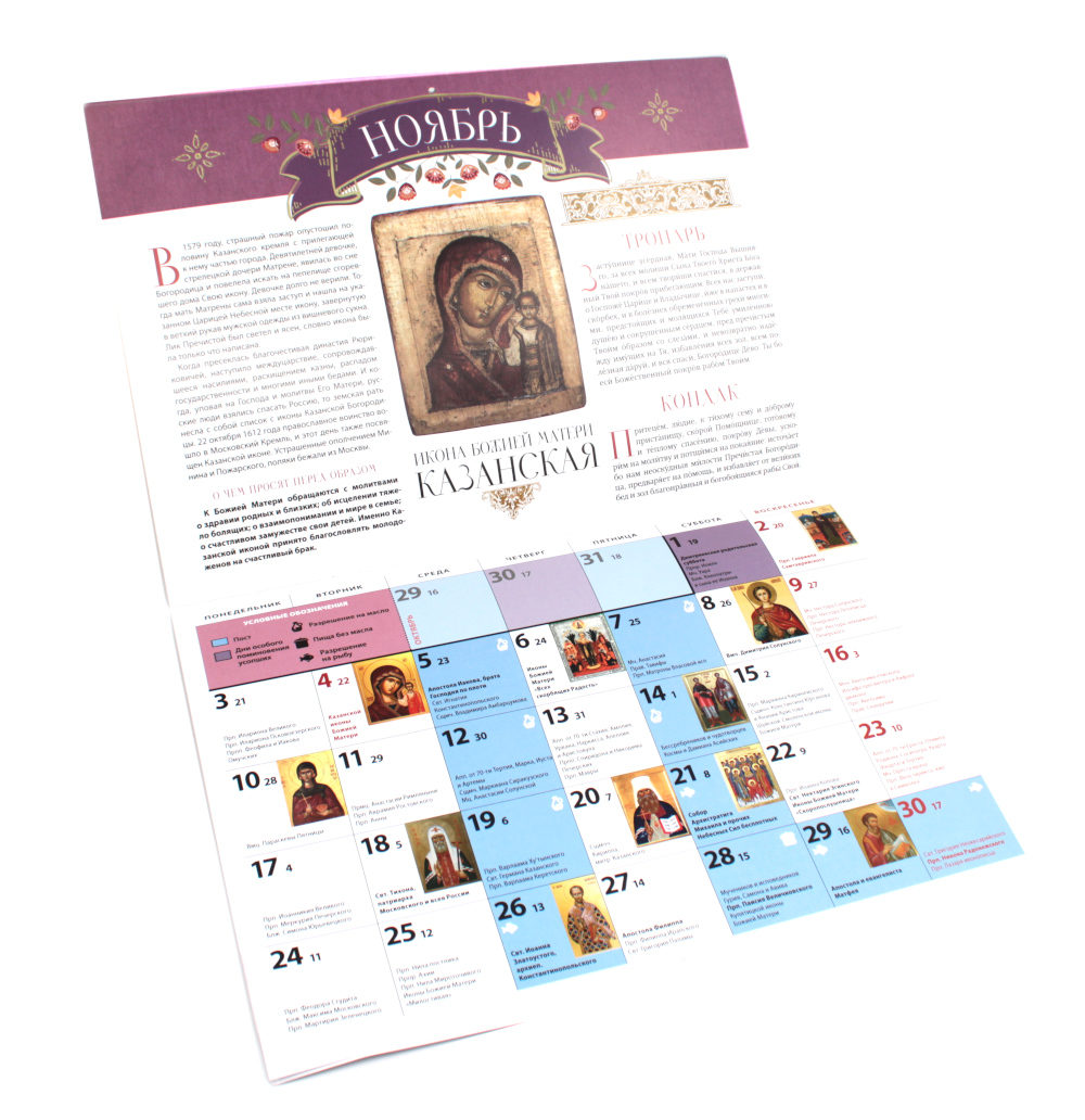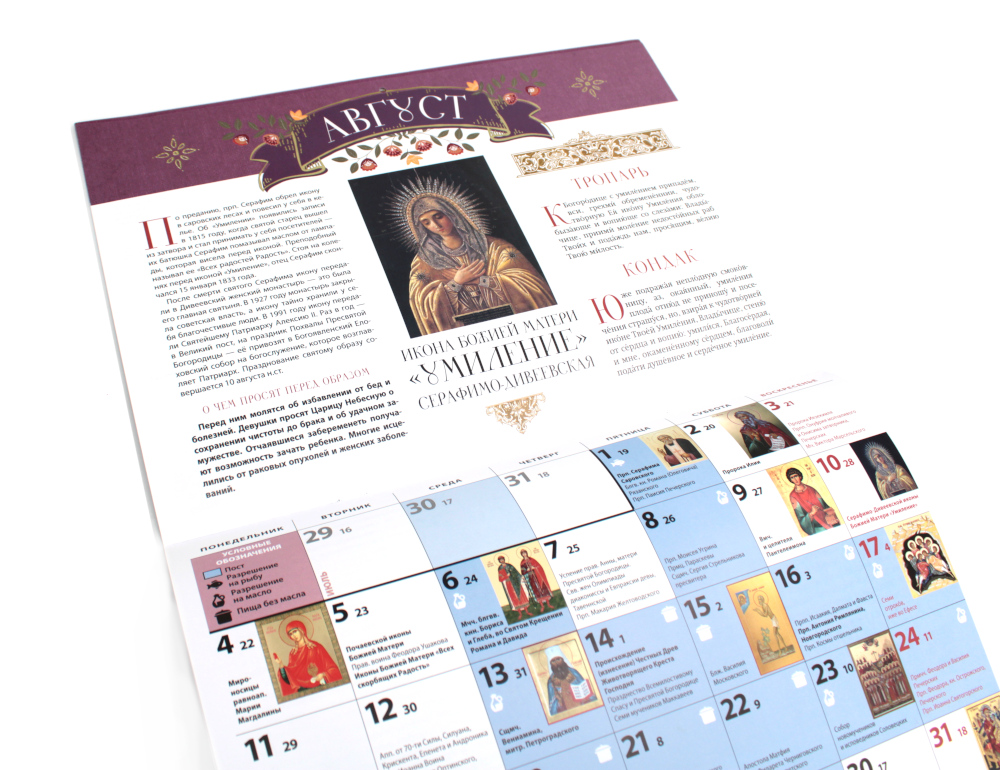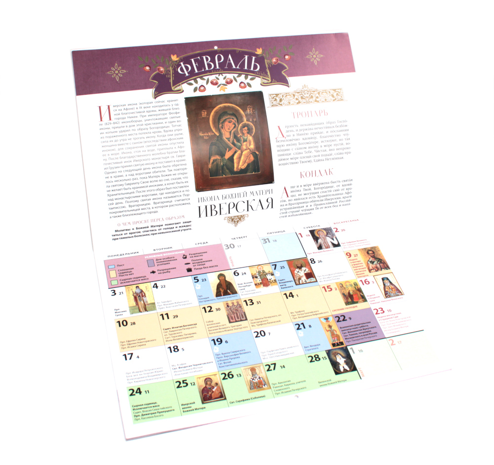 Правосланый перекидной календарь «Заступница» на 2025 год посвящен чудотворным иконам Пресвятой Богородицы. На каждый месяц приводятся их краткие истории, а также информация о чем просят перед образом, дополненная тропарями и кондаками. В календарной сетке указаны праздники, посты, дни особого поминовения усопших, сплошные седмицы, порядок трапезы в постные дни.| Издательство | Лествица |