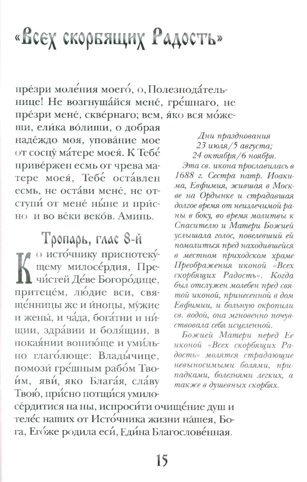 Это красиво иллюстрированная брошюра, представляющая собой красочное описание икон Божией Матери с приведением самих икон и краткими рассказами о чудотворениях, которые происходили от этих икон, о происхождении этих икон и тропарями к ним.| Издательство | Православный печатник |