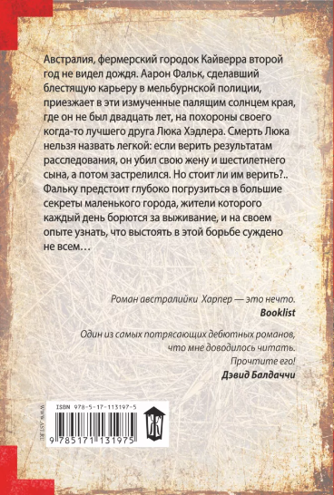 Австралия, фермерский городок Кайверра второй год не видел дождя. Аарон Фальк, сделавший блестящую карьеру в мельбурнской полиции, приезжает в эти измученные палящим солнцем края, где он не был двадцать лет, на похороны своего когда-то лучшего друга Люка Хэдлера. Смерть Люка нельзя назвать легкой: если верить результатам расследования, то он убил свою жену и шестилетнего сына, а потом застрелился. Но стоит ли им верить?