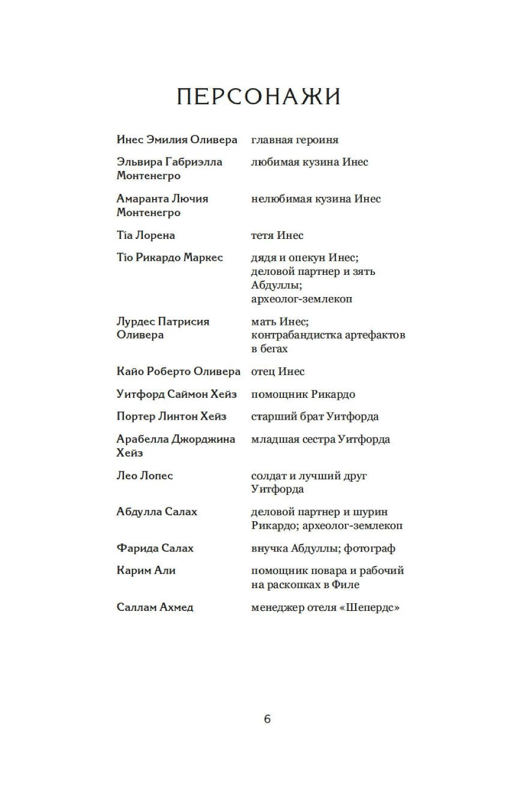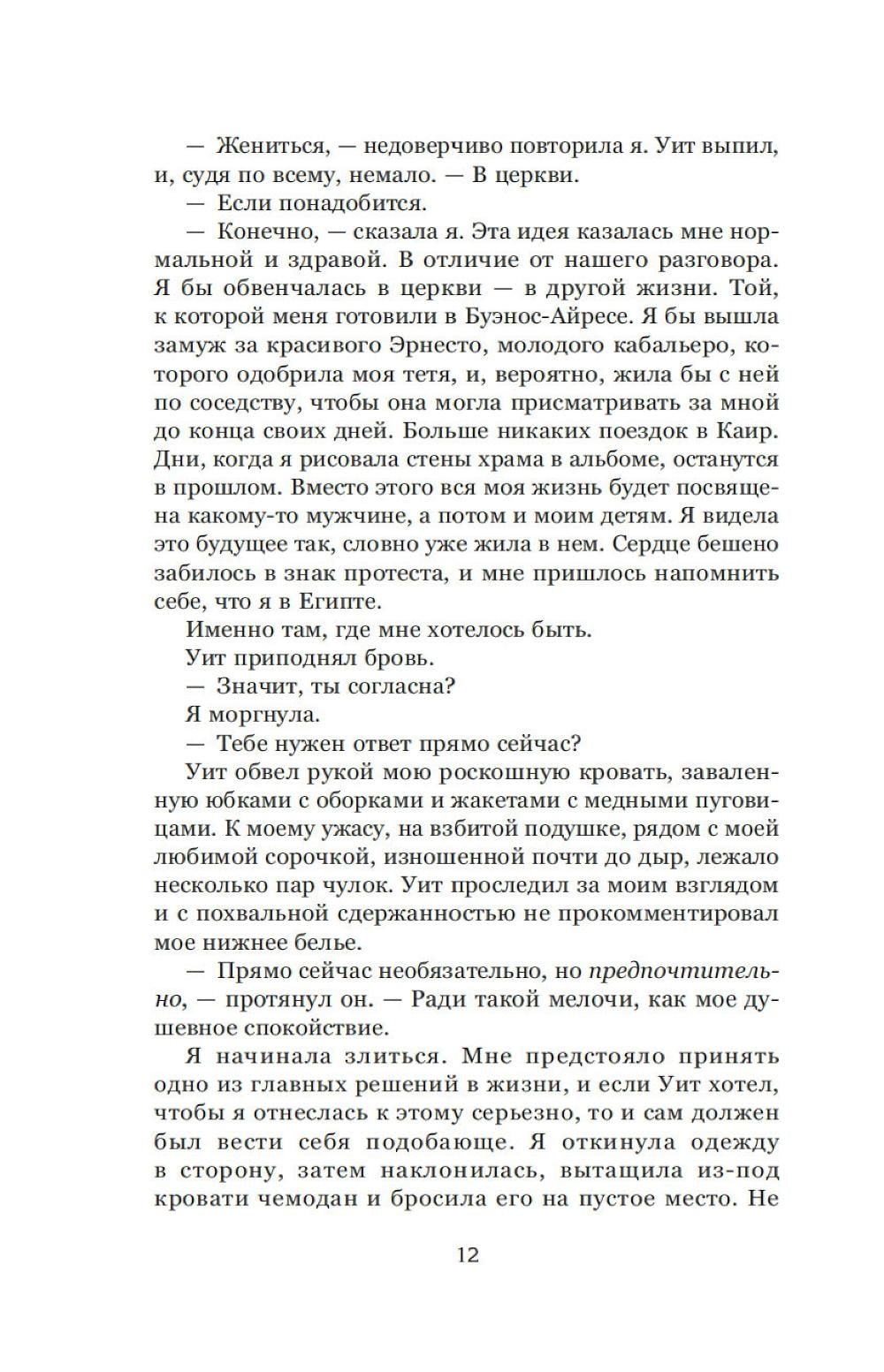 Простить коварное предательство? Или бороться до конца и добиться справедливости? Инес уверена, что ей по силам продолжить нелегкое путешествие по Египту. Все, что ей нужно, - отыскать бесследно исчезнувшего отца и наказать мать, которая годами скрывала свое истинное лицо. Но дядя непреклонен. Если Инес хочет когда-нибудь получить свое наследство, она должна вернуться в Буэнос-Айрес к спокойной жизни. Вот только девушка не готова мириться с этим. И у нее остается лишь один выход. ВЫЙТИ ЗАМУЖ ЗА УИТА ХЕЙЗА. Помощник ее дяди, некогда заклятый враг и человек, рядом с которым сердце бьется в тысячу раз быстрее. Но Уит хранит свои опасные секреты. И вовсе не готов раскрыть их. Какие дела заставляют его до сих пор оставаться в Египте? И стоит ли доверять свою жизнь тому, чьи тайные планы могут в одно мгновение оборвать ее?| Издательство | Махаон |