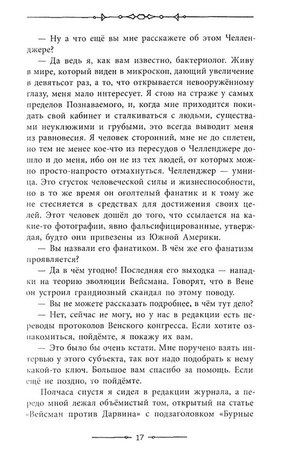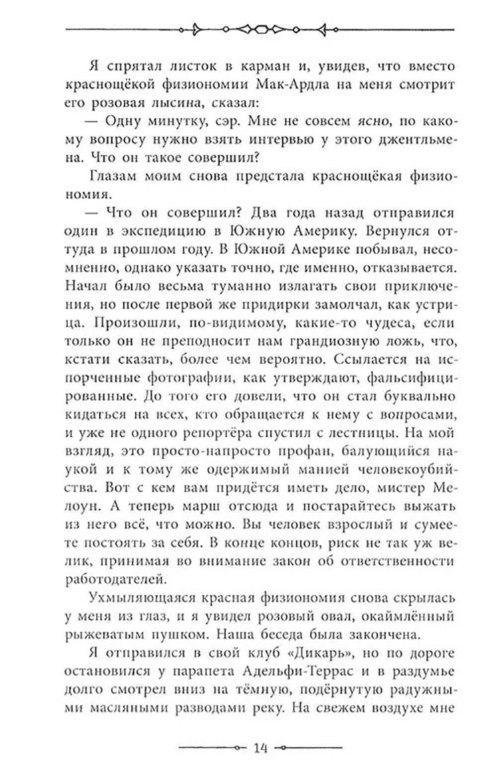 Научное сообщество возмущено: эксцентричный профессор Челленджер утверждает, что в верховьях Амазонки обитают динозавры. Опровергнуть сомнительное открытие вызывается профессор Саммерли. В сопровождении молодого репортера Мэлоуна и известного путешественника лорда Рокстона ученые отправляются в Южную Америку. Там героям предстоит: открыть затерянный мир, который населяют огромные устрашающие существа. Кажется, в этой стране гигантов нет места человеку... Иллюстрации американского художника Джозефа Клемента Колла.| Издательство | Изд. Лабиринт Пресс |