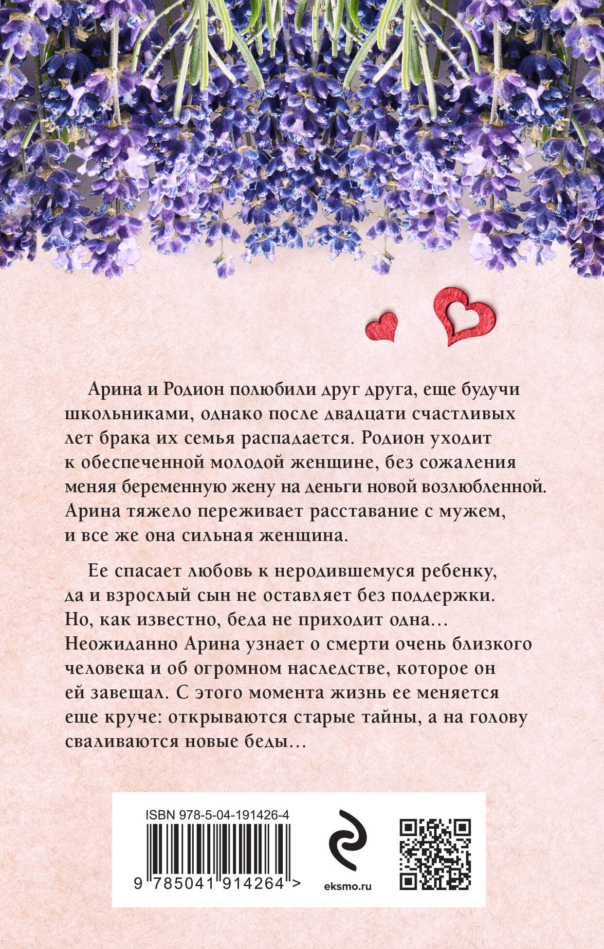 Библиография Веры Колочковой насчитывает более 60 романов, многие из которых уже воплощены на экране. Любовь к автору вполне объяснима, ведь она пишет об обычных людях, которые стремятся к лучшей жизни и борются за собственное счастье. Простые и чувственные, увлекательные и романтичные, романы Колочковой задевают за живое, заставляя сопереживать и радоваться героям как своим знакомым. Арина и Родион полюбили друг друга еще будучи школьниками, однако после двадцати счастливых лет брака их семья распадается. Родион уходит к обеспеченной молодой женщине, без сожаления меняя беременную жену на деньги новой возлюбленной. Арина тяжело переживает расставание с мужем, и все же она сильная женщина. Ее спасает любовь к неродившемуся ребенку, да и взрослый сын не оставляет без поддержки. Но, как известно, беда не приходит одна… Неожиданно Арина узнает о смерти очень близкого человека и об огромном наследстве, которое он ей завещал. С этого момента жизнь ее меняется еще круче: открываются старые тайны, а на голову сваливаются новые беды…| Издательство | ООО "Издательство "Эксмо" |
