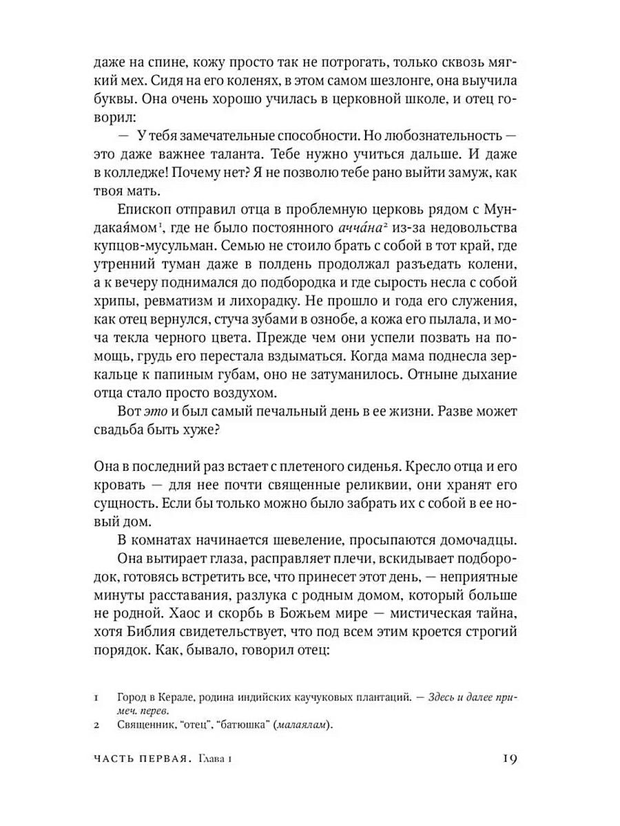 Новый роман автора «Рассечения Стоуна», сразу после выхода американского издания ставший одним из главных бестселлеров. Эпическая история о людях, Индии и медицине. Южная Индия, семейные тайны; слоны, запросто приходящие в гости пообедать; таинственные духи, обитающие в подполье; медицина, ее романтика и грубая реальность; губительные страсти и целительная мудрость. А еще приключения, мечты, много красок, звуков, света, человеческих историй, вплетенных в историю Индии. Все начинается в 1900 году, а заканчивается в конце 1970-х, хотя на самом деле совсем не заканчивается. История нескольких поколений семьи индийских христиан из Кералы, удивительным образом связанная с историей врача-шотландца родом из Глазго, которого судьба занесла в Индию. Но все же роман Абрахама Вергезе - это не просто семейная сага в экзотических декорациях. Это мудрый и добрый рассказ о том, что семью создает не кровное родство, а общность судьбы; что выбор есть всегда, но не всегда есть силы его совершить; что все мы навеки связаны друг с другом своими действиями и бездействием и что никто не остается в одиночестве.| Издательство | Фантом Пресс |