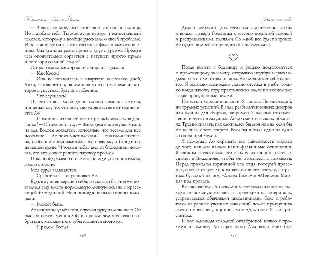 Звезда зарубежного TikTok, более 160 млн просмотров видео о книге! Страстный и чувственный роман от авторов бестселлеров New York Times и USA Today Кристы и Бекки Ритчи! Для фанатов романов Л. Дж. Шэн и Пенелопы Дуглас, а также поклонников сериалов «Друзья», «Эйфория» и «Сплетница! Вы будете очарованы атмосферой славы, горячих парней и крепкой дружбы! Более 95 тысяч оценок на портале Goodreads! Она зависима от близости. Он пристрастился к выпивке. Они оказались на дне… Никто не заподозрит, в чем состоит самый большой секрет застенчивой Лили Кэллоуэй. Ее нездоровая зависимость приводит к связям на одну ночь, после которых наутро становится стыдно, но у единственного человека, которому она доверила свой секрет, есть собственная тайна. Лучшие друзья Лорена Хейла - алкоголь и Лили Кэллоуэй. Чтобы скрыть свои увлечения от родственников, друзья притворяются парой. В течение трех лет им мастерски удается скрывать свои пагубные привычки. Но чем больше Лорен и Лили погружаются в зависимости, тем сильнее цепляются за свои разрушительные отношения, считая, что совместный быт лучше лжи. Когда их личная жизнь становится достоянием общественности, друзья понимают, что они не только зависимы от выпивки и близости… Они стали по-настоящему одержимы друг другом.| Издательство | ООО "Издательство "Эксмо" |