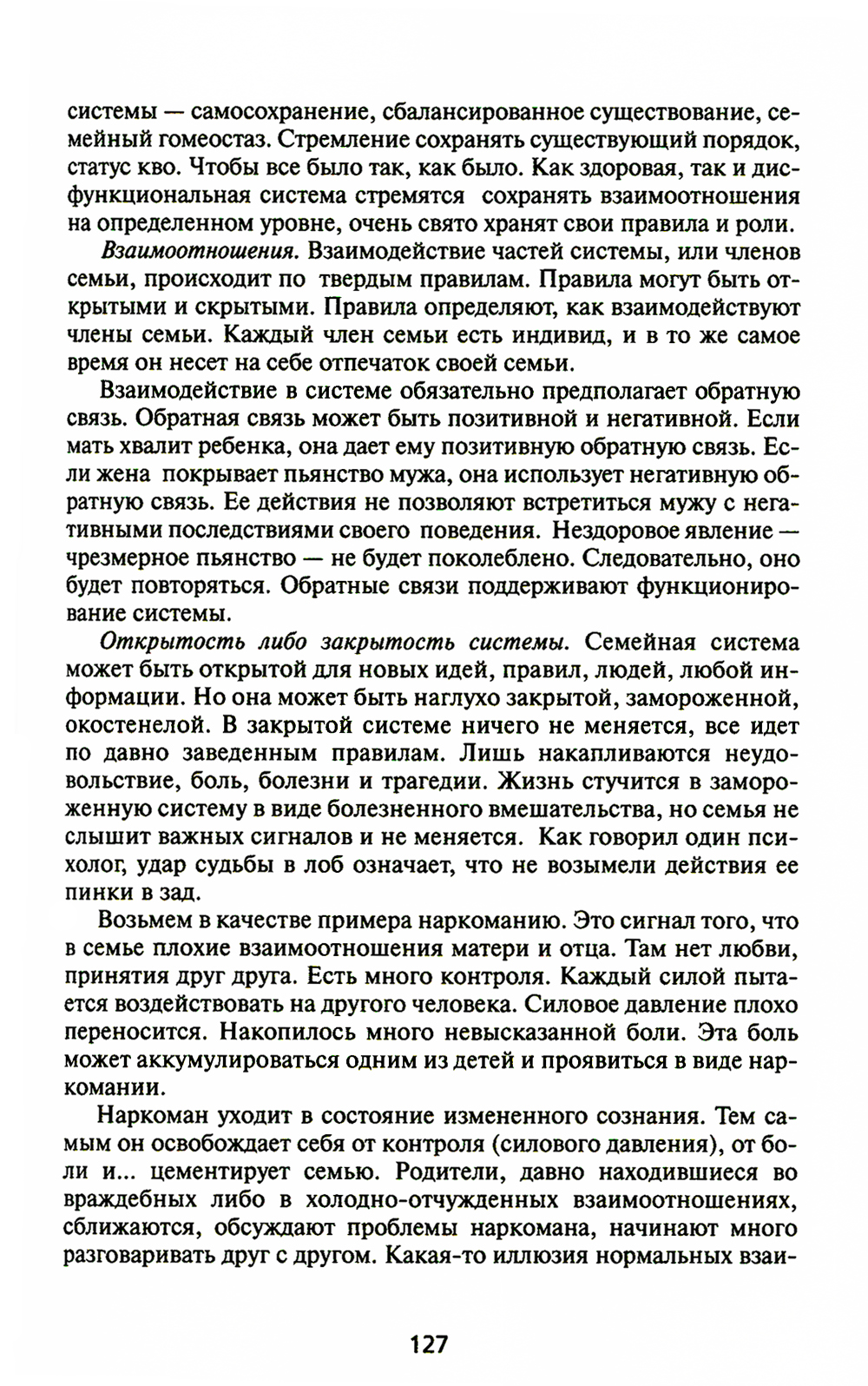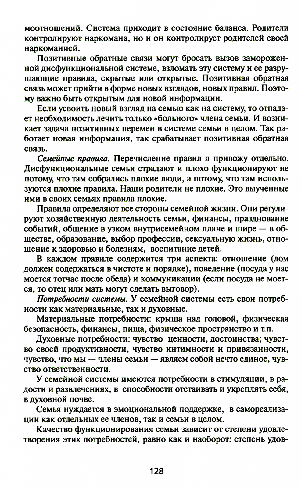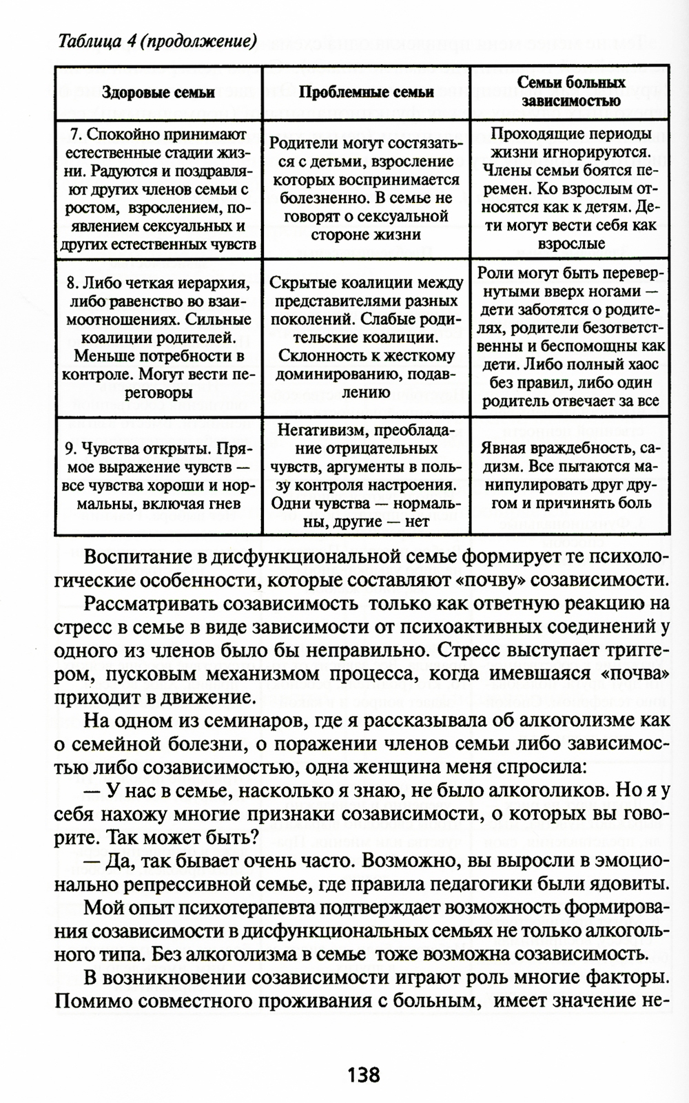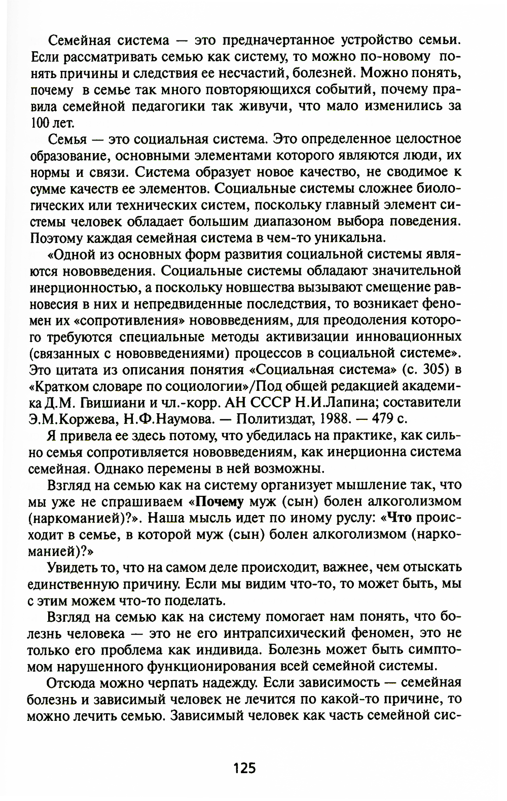 Книга посвящена психологии зависимости от психоактивных веществ (алкоголизм, наркомания) и «(зависимости. Созависимость - это психологическое состояние членов семьи больного. Трезво живущие родственники таких больных эмоционально вовлечены в эту болезнь. Родственники не только сами страдают, но и строят такие взаимоотношения в семье, которые препятствуют выздоровлению больного. Созависимостью страдают жены, матери, братья, сестры, взрослые дети и даже внуки больного алкоголизмом или наркоманией. Сами больные также характеризуются признаками («зависимости до развития болезни либо после наступления трезвости. Созависимые родители не могут успешно выполнять свои родительские функции, страдают дети. Происходит повторение нежелательных событий в семье. Взрослые дети составляют группу высокого риска множественных проблем: развития зависимости, психосоматических заболеваний, тревожно-депрессивных состояний, часто они вступают в трудный брак. Описаны закономерности жизни таких семей (дисфункциональная семья). Созависимость излечима. Впервые в России предложена программа преодоления созависимости. Исцеление приводит к более гармоничным взаимоотношениям в семье, служит профилактикой возникновения зависимости у детей. Книга написана языком, доступным для родственников и друзей больных. В то же время книга может быть руководством для психологов, психотерапевтов, наркологов, психиатров, социальных работников в работе с больными и их семьями.| Издательство | Изд.Базенков И.Л. |