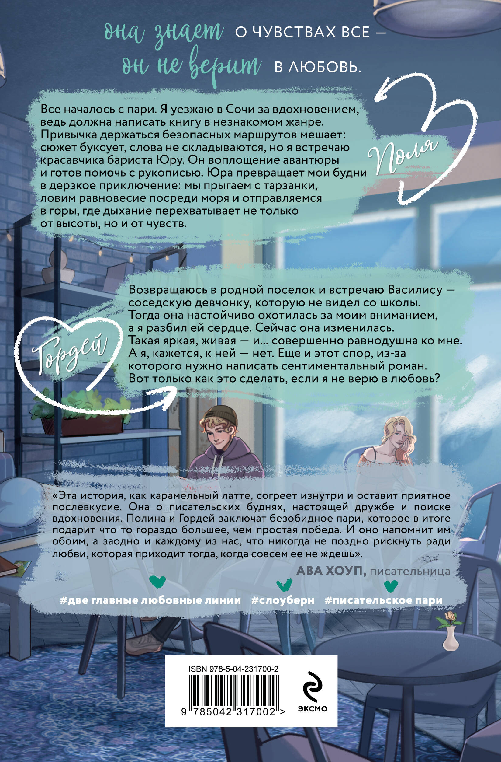Она знает о чувствах все - он не верит в любовь. ПОЛЯ Все началось с пари. Я уезжаю в Сочи за вдохновением, ведь должна написать книгу в незнакомом жанре. Привычка держаться безопасных маршрутов мешает: сюжет буксует, слова не складываются, но я встречаю красавчика-бариста Юру. Он - воплощение авантюры, и готов помочь с рукописью. Юра превращает мои будни в дерзкое приключение: мы прыгаем с тарзанки, ловим равновесие посреди моря и отправляемся в горы, где дыхание перехватывает не только от высоты, но и от чувств. ГОРДЕЙ Возвращаюсь в родной поселок и встречаю Василису - соседскую девчонку, которую не видел со школы. Тогда она настойчиво охотилась за моим вниманием, а я разбил ей сердце. Сейчас она изменилась. Такая яркая, живая, и... совершенно равнодушна ко мне. А я, кажется, к ней - нет. Еще и этот спор, из-за которого нужно написать сентиментальный роман. Вот только как это сделать, если я не верю в любовь? «Эта история, как карамельный латте, согреет изнутри и оставит приятное послевкусие. Она о писательских буднях, настоящей дружбе и поиске вдохновения. Полина и Гордей заключат безобидное пари, которое в итоге подарит что-то гораздо большее, чем простая победа. И оно напомнит им обоим, а заодно и каждому из нас, что никогда не поздно рискнуть ради любви, которая приходит тогда, когда совсем ее не ждешь». - Ава Хоуп, писательница «Завязка на любовь» - нежная, уютная история, которая мягко проведёт вас от зимних морозов к первому весеннему солнцу. Это роман о двух писателях, заключивших судьбоносное пари. Пари, благодаря которому они обрели нечто большее, чем просто победа. И даже если вам покажется, что уже всё ясно, эта история докажет - любовь умеет удивлять. С любовью к читателям и книгам, команда «Сорри, я не твоя лав стори».| Издательство | ООО "Издательство "Эксмо" |