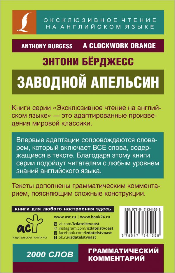 «Заводной апельсин» Энтони Бёрджесса переносит читателя в город будущего, жители которого даже не подозревают, что под самым их носом набирает силу свирепая молодежная группировка, считающая насилие высоким искусством жизни. Это история о добре и зле, а также о смысле человеческой свободы.