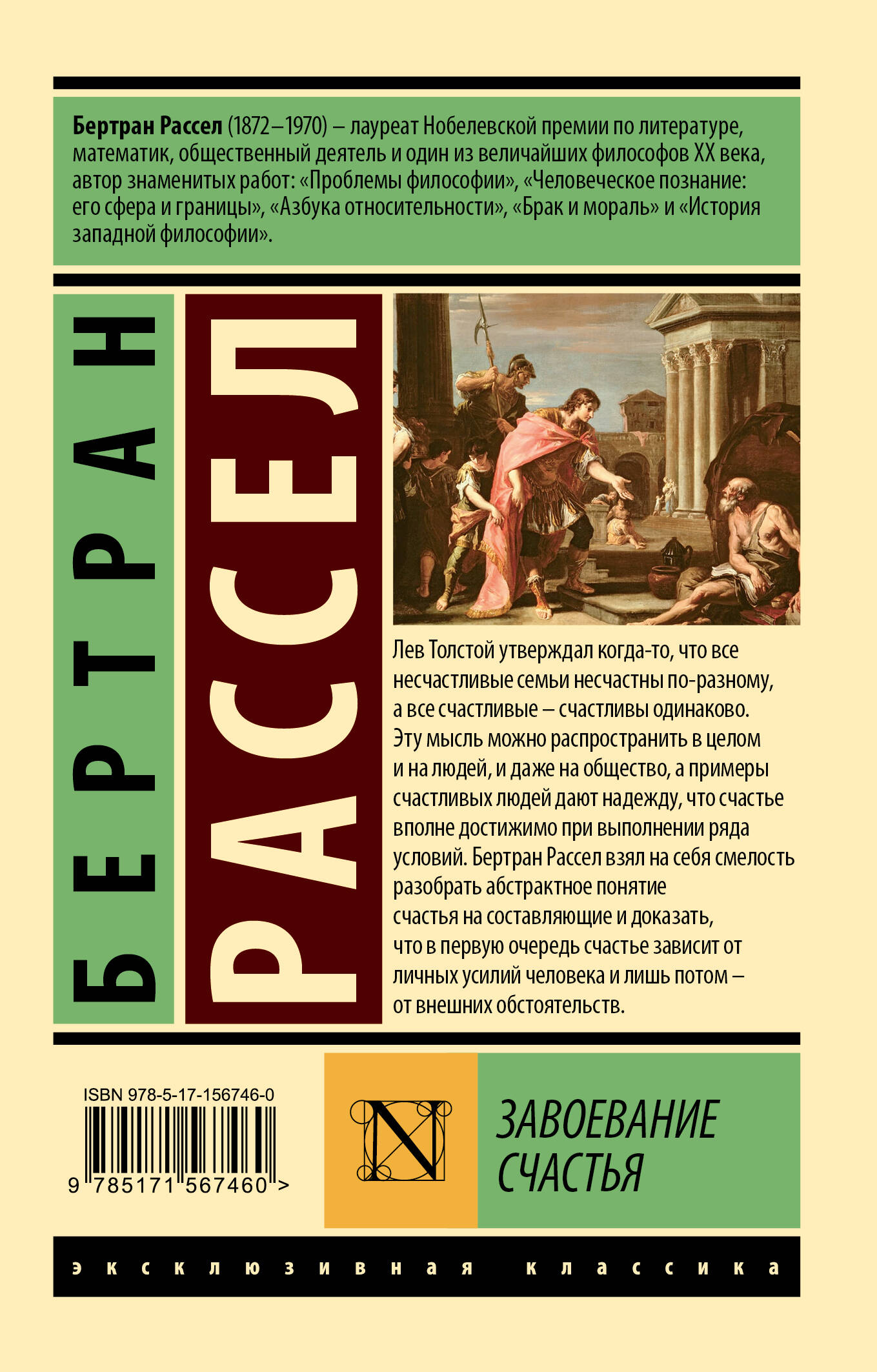 Лев Толстой утверждал когда-то, что все несчастливые семьи несчастны по-разному, а все счастливые - счастливы одинаково. Эту мысль можно распространить и в целом а людей и даже на общество, а примеры счастливых людей дают надежду, что счастье вполне достижимо при выполнении ряда условий. Бертран Рассел взял на себя смелость разобрать абстрактное понятие счастья на составляющие и доказать, что в первую очередь счастье зависит от личных усилий человека и лишь потом - от внешних обстоятельств.| Издательство | ИЗДАТЕЛЬСТВО "АСТ" |