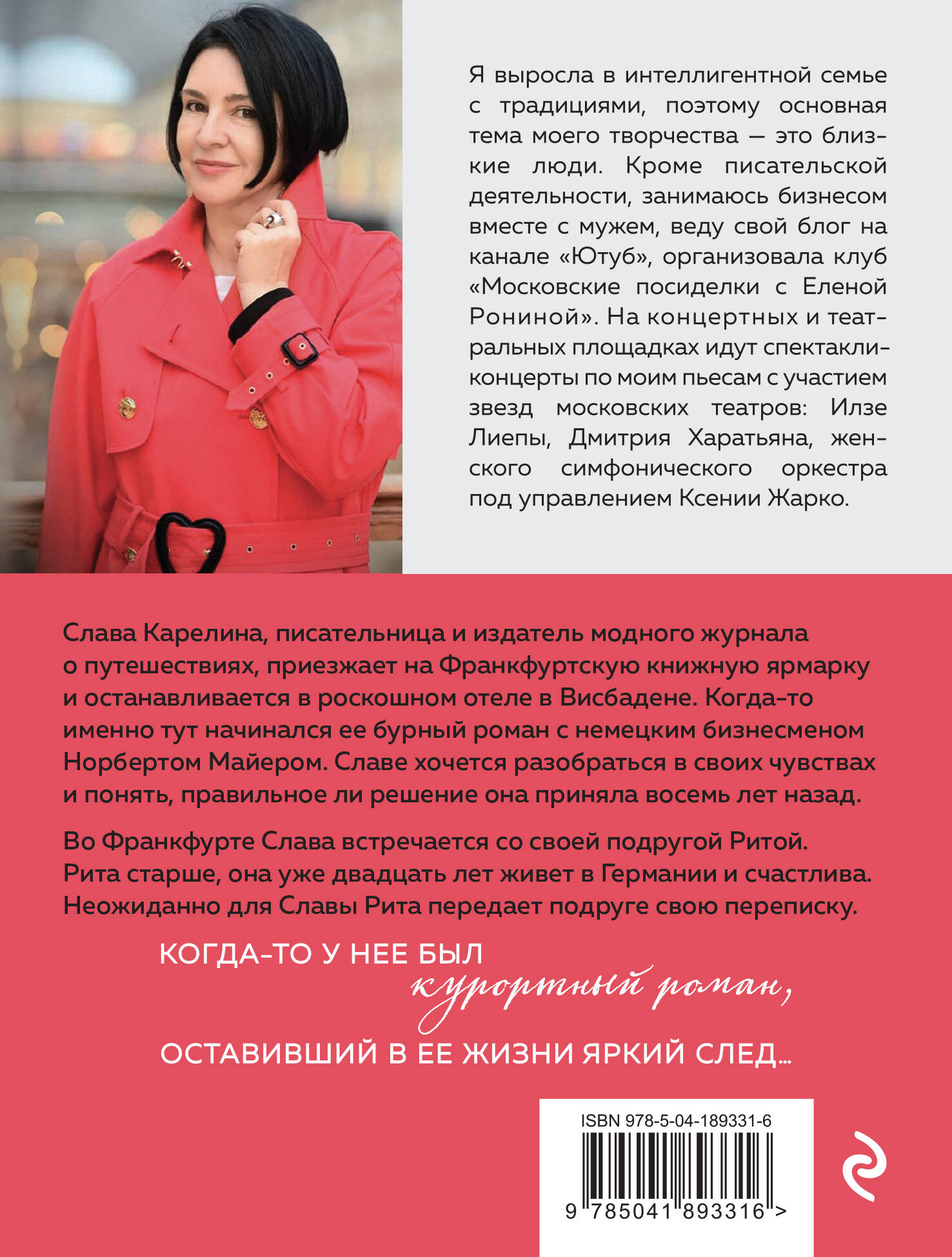 На страницах этой книги одновременно разворачиваются две истории любви: Славы и Норберта, Риты и Павла. Сорокалетние женщины влюбляются и готовы изменить свою жизнь. Но возможно ли это? Как всегда в своих романах, Елена Ронина говорит о нравственности, о долге, об ответственности. И, конечно же, о любви. Но каждый понимает любовь по-своему. Это чувство может как возвысить человека, так и разрушить.| Издательство | ООО "Издательство "Эксмо" |