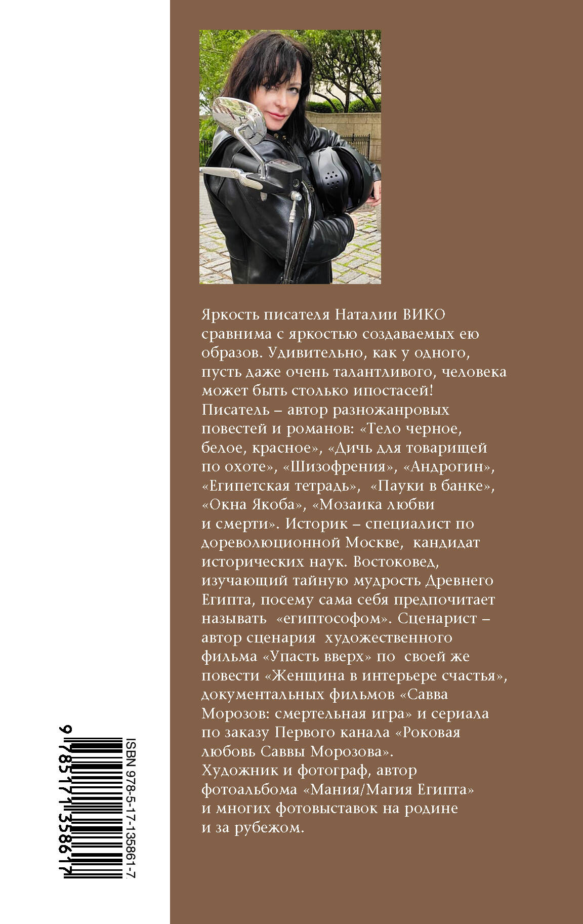 Роман Наталии Вико, как всегда, полифоничен, в нем - приключения и бытописание, мистика и прагматика, эзотерика, психология, философия, политика и религия, пронизывающие нашу жизнь, зачастую такую нелепую и смешную, но в то же время неповторимую и единственную, которую каждый пишет набело, без черновиков. Книга является своего рода продолжением романа "Тело черное, белое, красное".| Издательство | ИЗДАТЕЛЬСТВО "АСТ" |
