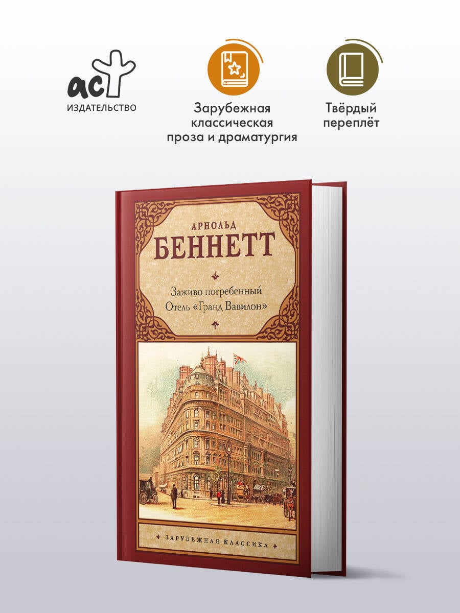 - «Заживо погребенный. Отель "Гранд Вавилон"» Арнольда Беннетта - два ярких произведения классика британской литературы под одной обложкой. - Автор - Арнольд Беннетт (1867-1931), один из самых успешных писателей своего времени: прозаик, драматург, журналист и литературный критик, создатель цикла «Пять городов» и книги «Как все успевать за 24 часа». - «Заживо погребенный» повествует о застенчивом художнике Приаме Фарлле, желающем скрыться от назойливого внимания публики и выдающим себя за собственного умершего слугу. Лишившись богатства, он вынужден приспосабливаться к тяготам обычной жизни - и заново открывать себя. - «Отель "Гранд Вавилон"» - это роман о самоуверенном американском миллионере, купившем один из лучших лондонских отелей. За фасадом роскоши скрываются интриги, тайны и преступления, с которыми новому владельцу предстоит столкнуться лицом к лицу. - Произведения Беннетта отличаются глубоким психологизмом, иронией и тонким пониманием человеческой природы. Автор мастерски рисует портреты героев и воссоздает атмосферу эпохи. - Издание в твердом переплете с узнаваемым классическим оформлением, вошедшее в серию «Зарубежная классика».| Издательство | Издательство "АСТ" |