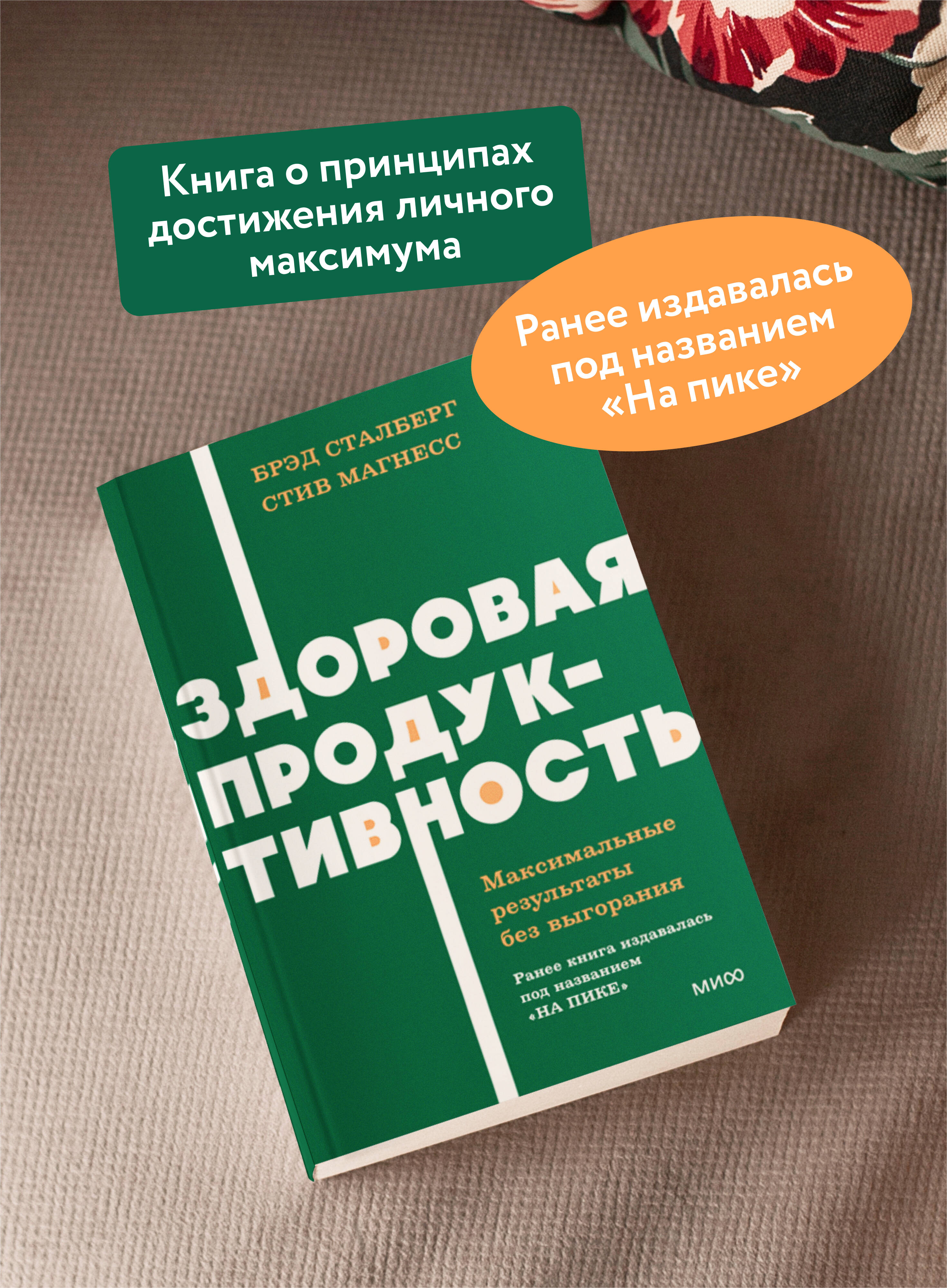 Можно ли всегда находиться на пике возможностей? И если да, то как этого добиться? Чтобы найти ответы на эти вопросы, Брэд Сталберг и Стив Магнесс изучили стиль работы выдающихся представителей широкого круга профессий, великих мастеров своего дела, тех, кто не просто находится на пике своих возможностей, но на пике возможностей вообще. Оказалось, что достигать самых высоких результатов в любой сфере позволяют несколько общих принципов. И не важно, стремится ли человек принять участие в Олимпиаде, создать шедевр искусства или закончить давний проект. Прочитав книгу, вы узнаете: - как воспитать в себе настрой на преодоление; - как добиться глубокой концентрации и идеального исполнения задач; - как разработать свой режим дня; - как правильно отдыхать и когда; - как оптимизировать производительность в течение дня, месяца, года и жизни. Даже если вы начнете практиковать лишь часть предложенных методик, результаты не заставят себя ждать. И, скорее всего, впервые за долгое время у вас появятся выходные, вечером останутся силы поиграть с детьми или заняться творчеством, и вы сможете завершить давно начатое дело.| Издательство | МИФ ООО |