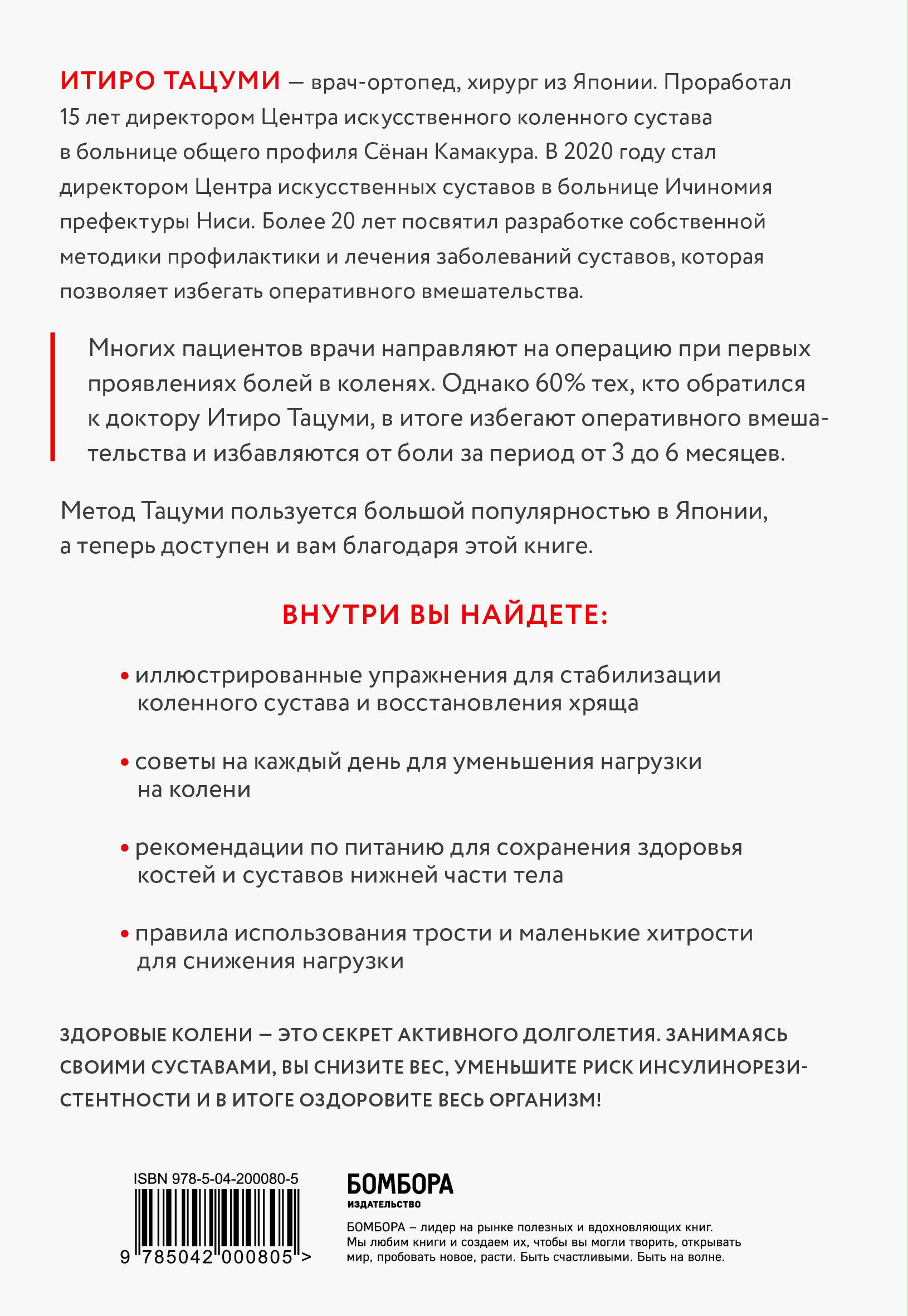 Хотите наслаждаться активной жизнью до глубокой старости и никогда не страдать от болей в коленях и стопах? Тогда эта книга для вас! Японская методика, разработанная известным хирургом-ортопедом Итиро Тацуми, помогает сохранить здоровье коленных суставов и избавиться от боли без хирургического вмешательства. Доктор Тацуми - специалист с более чем 20-летним опытом в области лечения заболеваний суставов, и его методика доказала свою эффективность: 60% пациентов, обратившихся к нему с болями в коленях, успешно избежали операции и восстановились за 3-6 месяцев. В этой книге вы найдете: - Простые и эффективные упражнения для здоровья коленей с пошаговыми иллюстрациями. - Рекомендации по питанию для укрепления костей и суставов. - Советы по правильной ходьбе для коррекции Х- и О-образного искривления ног. - Практичные рекомендации по снижению нагрузки на колени и правильному использованию трости. Не дожидайтесь болей в теле и ограничений в движении! Начните заботиться о своих коленях уже сегодня, чтобы наслаждаться полноценной и активной жизнью долгие годы.| Издательство | ООО "Издательство "Эксмо" |