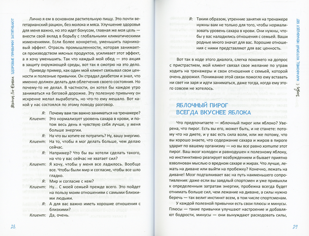 Почему многим людям тяжело соблюдать здоровые привычки, которые точно улучшат их жизнь? По какой причине даже самые здравомыслящие со временем забрасывают полезные занятия? И как, наконец, обрести то, чего мы желаем всей душой - эмоциональное и физическое благополучие? Дэйна Ли-Бэггли, клинический психолог, просто и доступно объясняет, почему так сложно вести здоровый образ жизни. Опираясь на научные исследования и личный опыт помощи пациентам, она рассказывает, как выработать и закрепить полезные привычки. Занятия спортом, правильное питание, соблюдение режима, умеренное пользование гаджетами - действия, которые помогают жить здоровой и счастливой жизнью. Автор научит находить радость в заботе о себе и своем здоровье и делать это с желанием и удовольствием. Вы узнаете, как мотивировать себя, чтобы не забросить начатое, как получать поддержку в своем окружении и совершать осознанный выбор в пользу здорового образа жизни, даже если вас тянет к деструктивному поведению.| Издательство | ИГ Весь |