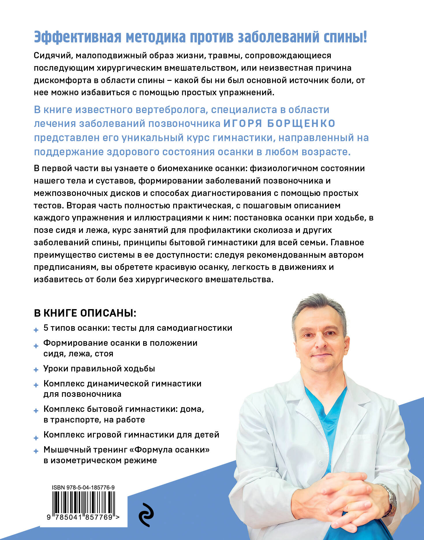 Попробуйте в течение пяти минут походить по комнате, чуть наклонившись вбок. Уже через минуту вы почувствуете боль не только в пояснице, но и в шее, позже появится и головная боль. А ведь многие люди подобным образом ходят всю жизнь, не отдавая себе отчета в том, что незначительные изменения осанки могут привести к самым разным хроническим заболеваниям! Головные боли и боли в позвоночнике, вегетососудистая дистония, остеохондроз, грыжи межпозвонковых дисков - вот далеко не полный перечень недугов, вызванных неправильным положением тела. Вывод очевиден: надо исправлять осанку. Но как? Можно ли ее сформировать в зрелом возрасте? Как поставить ее своим детям? В новой книге известного вертебролога, специалиста в области лечения заболеваний позвоночника Игоря Борщенко опубликован его уникальный курс постановки осанки в любом возрасте. Занимаясь по методу И.А. Борщенко, вы приобретете здоровую привычку двигаться физиологично.