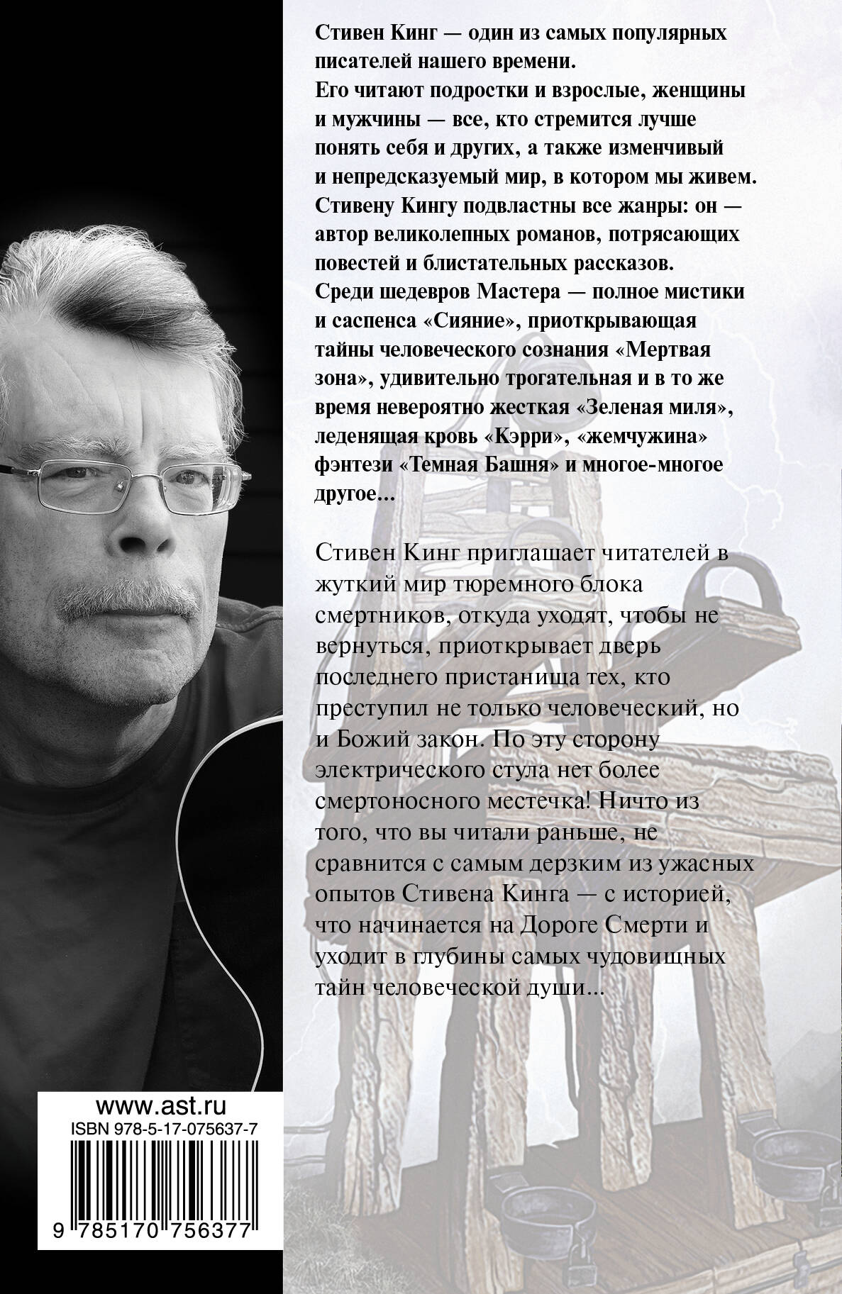Стивен Кинг приглашает читателей в жуткий мир тюремного блока смертников, откуда уходят, чтобы не вернуться, приоткрывает дверь последнего пристанища тех, кто преступил не только человеческий, но и Божий закон. По эту сторону электрического стула нет более смертоносного местечка! Ничто из того, что вы читали раньше, не сравнится с самым дерзким из ужасных опытов Стивена Кинга - с историей, что начинается на Дороге Смерти и уходит в глубины самых чудовищных тайн человеческой души...| Издательство | АСТ |