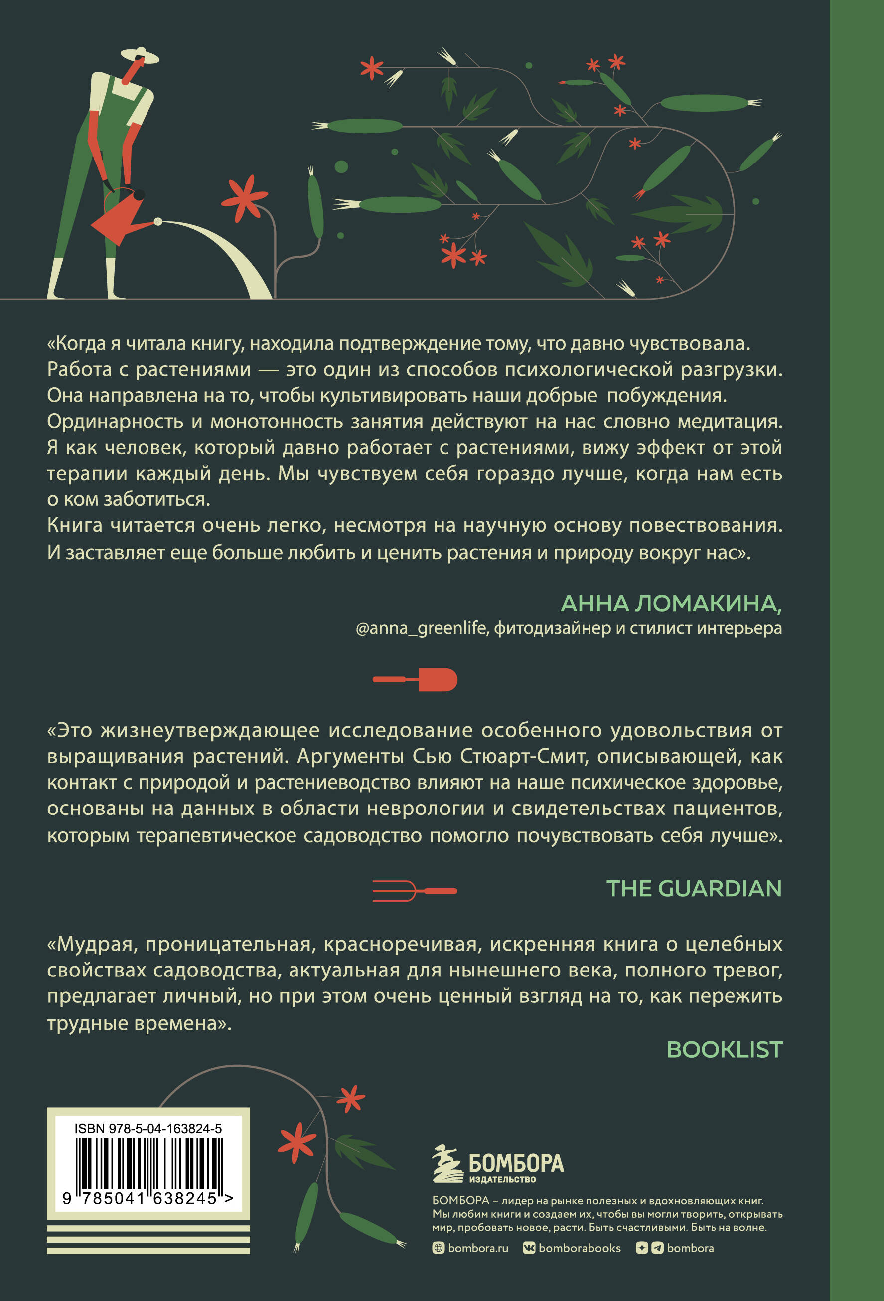 Когда мир вокруг кажется не самым уютным местом, каждый находит свой способ отвлечься от тревог и расслабиться: медитация, рисование, прогулки, готовка, вышивание, уход за цветами. Любое из этих занятий может быть в той или иной степени близко каждому из нас, однако контакт с природой важен для всех. Психиатр и садовод Сью Стюрат-Смит долгие годы изучала влияние растений на наше психологическое состояние. В своей книге описала, как садоводство помогает человеку упорядочить свою жизнь, создать комфортное пространство и почувствовать большее удовлетворение. КОМУ ПОДОЙДЕТ ЭТА КНИГА - Тем, кто ищет свой способ психологической разгрузки. - Тем, кто давно хочет заняться садоводством, но откладывает из-за неуверенности в том, что оно того стоит. - Тем, кто вынужден ухаживать за растениями близких, но не получает от этого удовлетворения. ИЗ ЭТОЙ КНИГИ ВЫ УЗНАЕТЕ - Почему стоит заняться растениеводством, когда в вашей жизни наступают тяжелые времена. - Как растения помогают реабилитироваться людям, пережившим психологическую травму. - Из-за чего среди цветов и деревьев и в контакте с ними нам становится спокойнее. ОТЗЫВЫ «Это жизнеутверждающее исследование особого удовольствия от выращивания растений. Аргументы Сью Стюарт-Смит, описывающей, как контакт с природой и растениеводство влияют на наше психическое здоровье, основаны на данных в области неврологии и свидетельствах пациентов, которым терапевтическое садоводство помогло почувствовать себя лучше». - The Guardian (Великобритания) «Мудрая, проницательная, красноречивая, искренняя книга о целебных свойствах садоводства актуальная для нынешнего века, полного тревог, предлагает личный, но при этом очень ценный взгляд на то, как пережить трудные времена». - Booklist