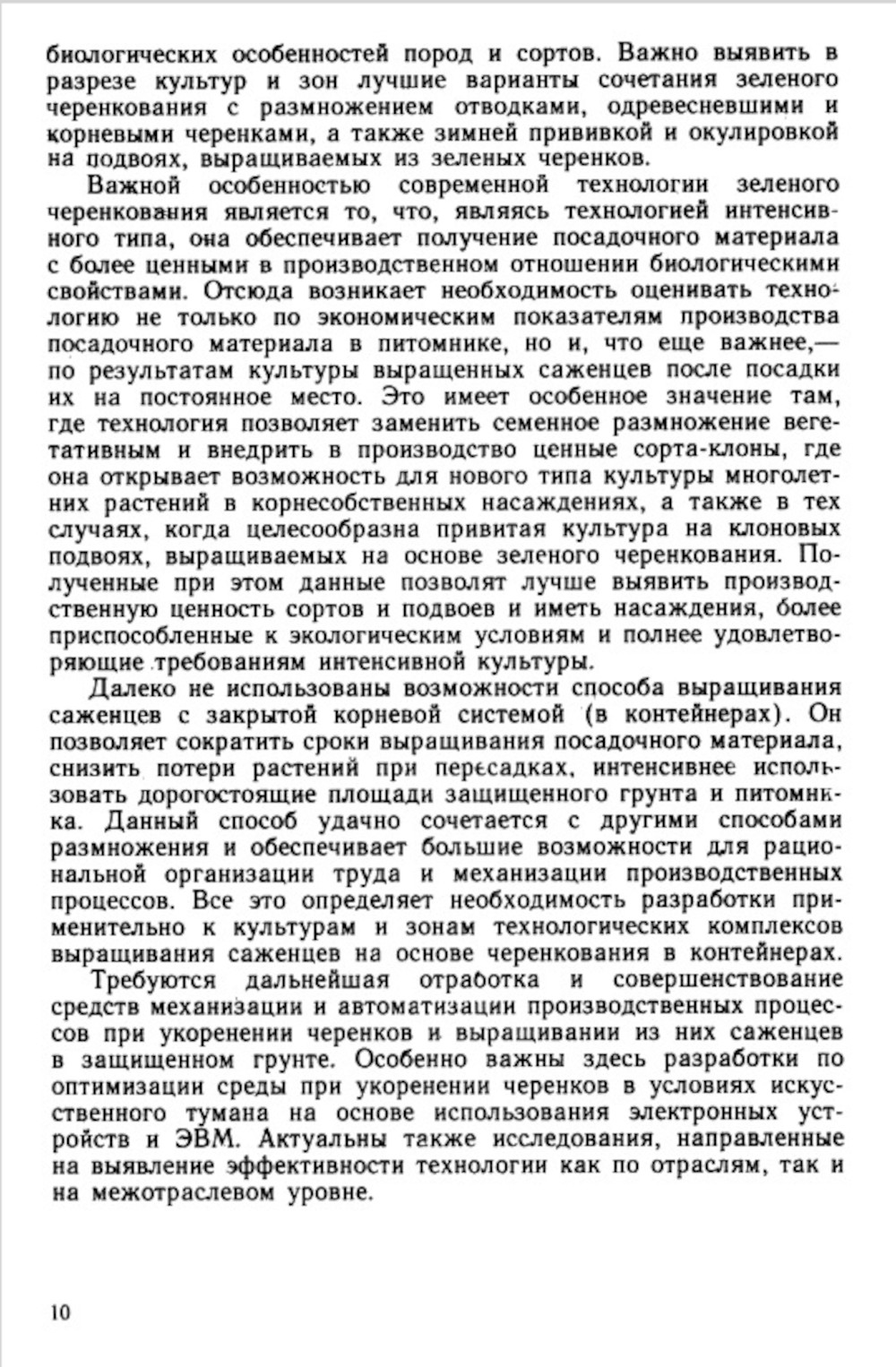 В настоящей книге обобщены результаты полувековых исследований автора и его учеников, а также данные других исследователей по выращиванию посадочного материала многолетних культур на основе зеленого черенкования и анализируется опыт внедрения в производство результатов научных разработок в данной области. В первой части излагаются теоретические основы процессов регенерации при вегетативном размножении и основные элементы промышленной технологии зеленого черенкования. Вторая часть посвящена особенностям размножения зелеными черенками плодовых, декоративных, лесных, эфиромасличных, технических и других культур. Книга может служить учебным пособием для студентов и аспирантов сельскохозяйственных и лесных вузов, учащихся техникумов. Она представляет большой интерес для специалистов, работающих в области выращивания посадочного материала, и научных работников, исследующих проблемы размножения растений. Она также будет полезна для желающих пополнить знания о биологических и хозяйственных особенностях садовых растений из зеленых черенков.| Издательство | ЛЕНАНД |