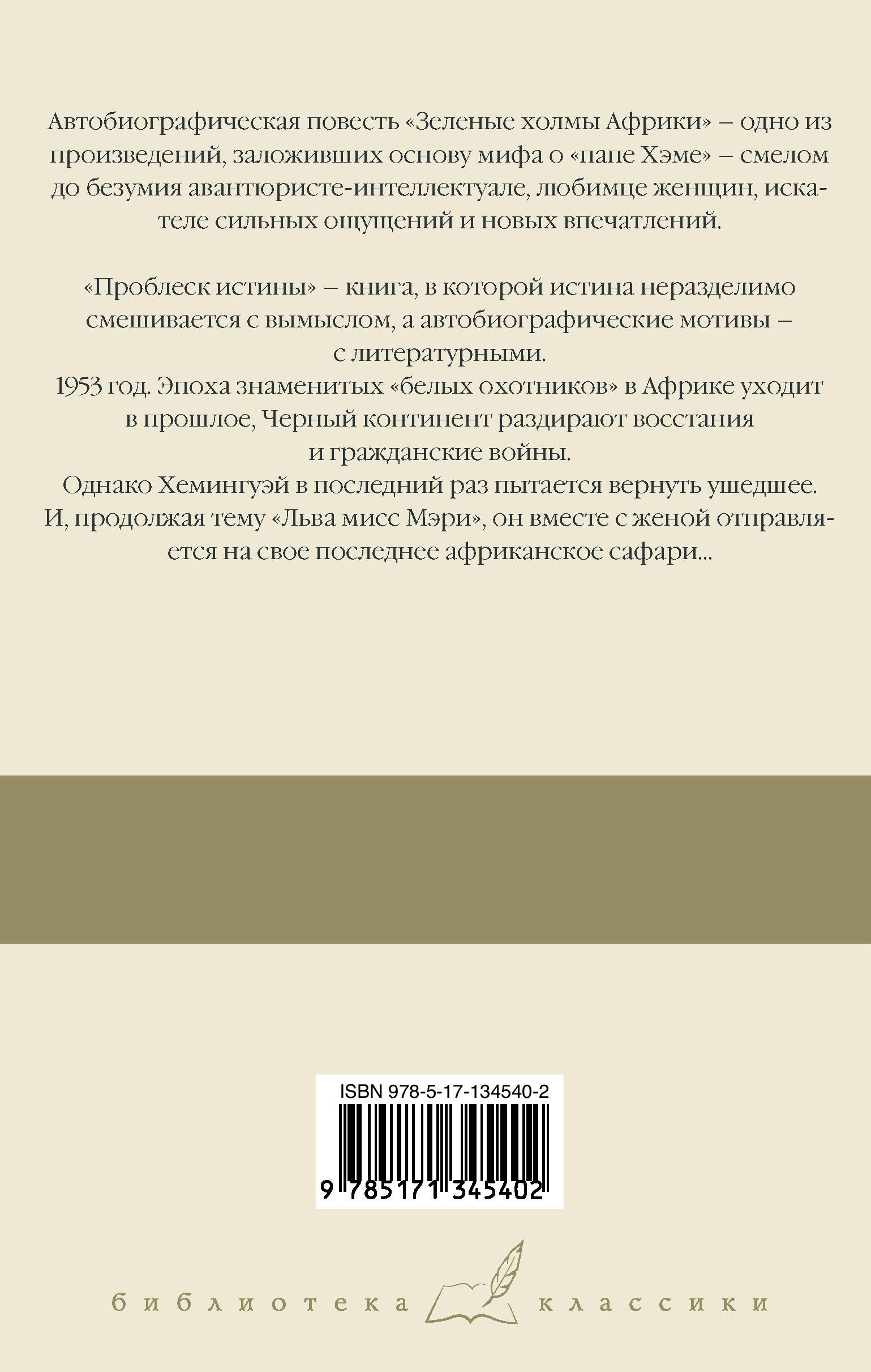 Аннотация: Зеленые холмы Африки; Проблеск истины
