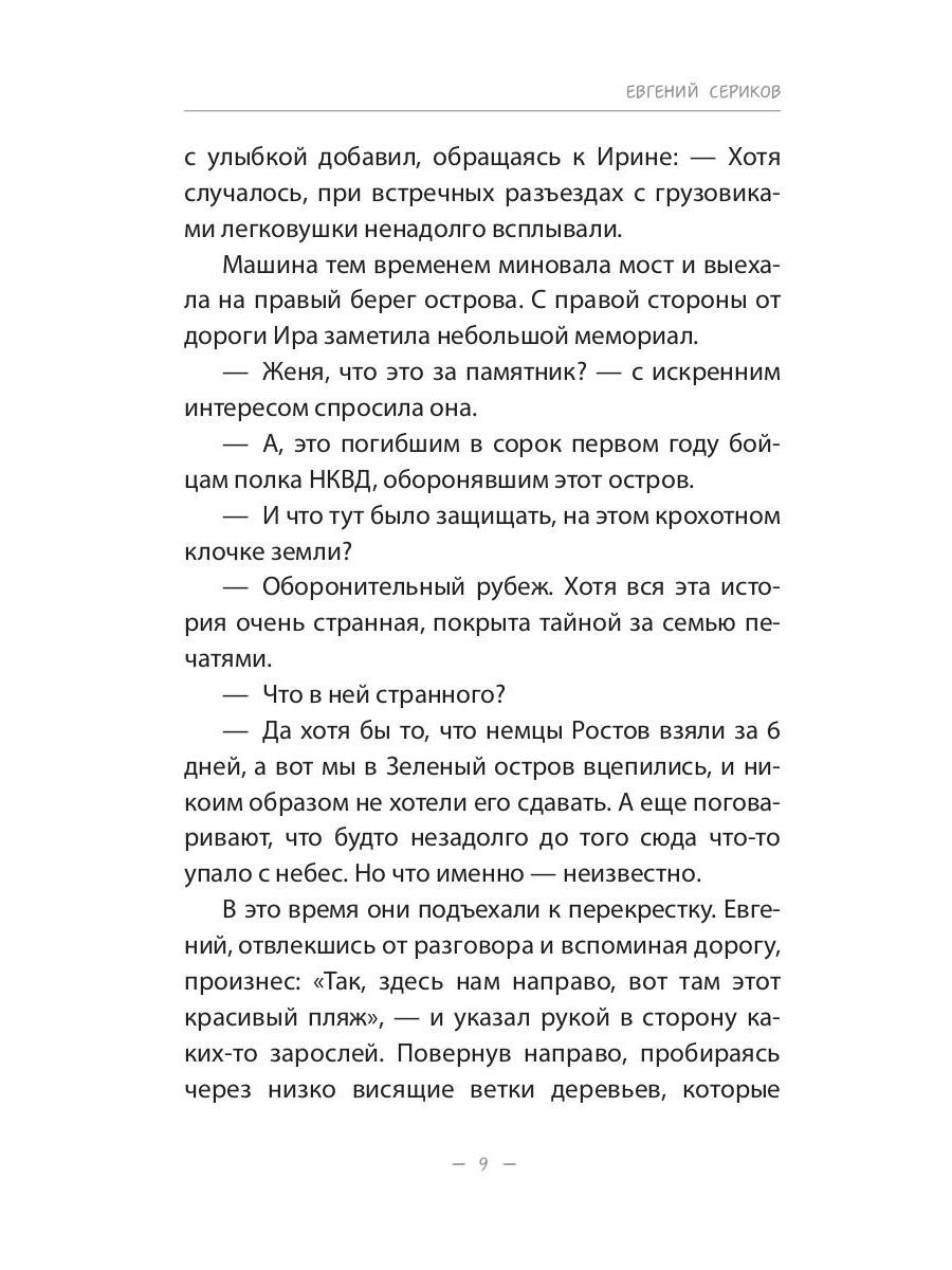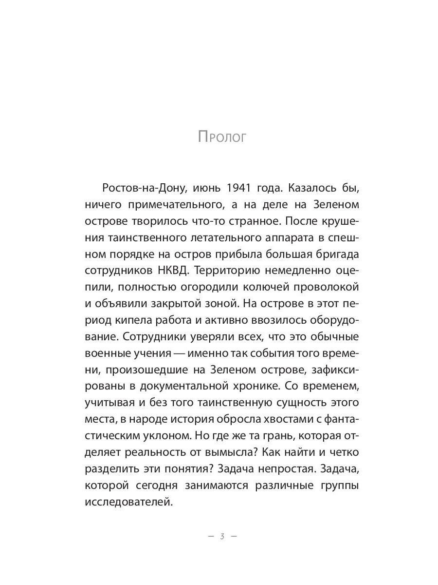 Посередине могучей реки Дон, на южной окраине Ростова-на-Дону, расположился небольшой участок суши, богатый зеленой растительностью, под названием Зеленый остров. Вот уже более 80 лет события, происходящие на острове, пугают и удивляют людей. Тайна его не раскрыта до сих пор. Рассказ основан на реальных событиях, происходящих в разное время в районе загадочного острова. Обычная советская семья в 1980 году прибыла на остров провести замечательные выходные. Мальчишка лет восьми, сам того не подозревая, столкнулся с одним загадочным артефактом и переместился куда-то, а точнее когда-то, где встретил группу отдыхающих там молодых людей. Ребята, удивлённые и потрясённые появлением мальчика, пытаются помочь ему вернуться к своим родителям. Они вместе с мальчишкой поневоле сталкиваются с феноменом артефакта и вовлекаются в захватывающую колесницу событий. В процессе их приключений, связанных с перемещением в пространстве и времени, одна из героинь тщательно изучает феномен загадочного артефакта. Руководствуясь тягой к изучению неизвестности, она запускает несколько направлений альтернативной реальности. Вернуть мальчишку домой - это только начало. Приключения ребят не останавливается, а загадка феномена артефакта обрастает всё более сложными переплетениями нитей времени, паутину которых им предстоит расплести…| Издательство | Рипол Классик |