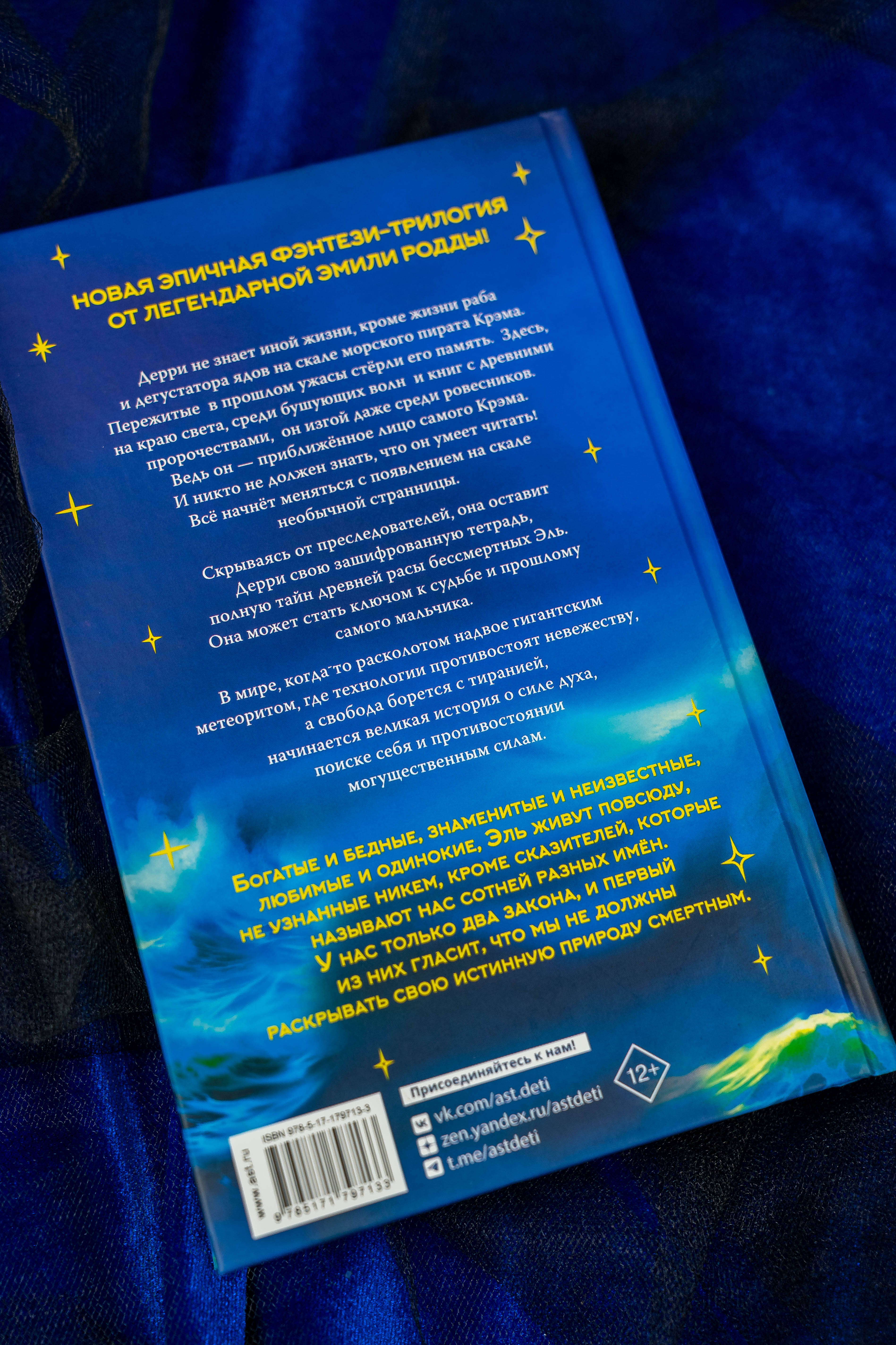 Новая эпичная фэнтези-трилогия от легендарной Эмили Родды! Богатые и бедные, знаменитые и неизвестные, любимые и одинокие, Эль живут повсюду, неузнанные никем, кроме сказителей, которые называют нас сотней разных имён. У нас только два закона, и первый из них гласит, что мы не должны раскрывать свою истинную природу смертным. Дерри не знает иной жизни, кроме жизни раба и дегустатора ядов на скале морского пирата Крэма. Пережитые в прошлом ужасы стёрли его память. Здесь, на краю света, среди бушующих волн и книг с древними пророчествами, он изгой даже среди ровесников. Ведь он - приближённое лицо самого Крэма. И никто не должен знать, что он умеет читать! Всё начнёт меняться с появлением на скале необычной странницы. Скрываясь от преследователей, она оставит Дерри свою зашифрованную тетрадь, полную тайн древней расы бессмертных Эль. Она может стать ключом к судьбе и прошлому самого мальчика. В мире, когда-то расколотом надвое гигантским метеоритом, где технологии противостоят невежеству, а свобода борется с тиранией, начинается великая история о силе духа, поиске себя и противостоянии могущественным силам.| Издательство | Издательство "АСТ" |